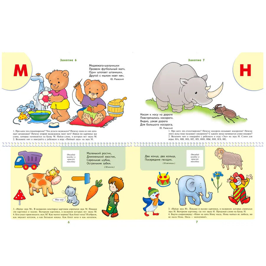 Всего в книге 16 занятий, 16 букв (А, О, У, И, Ы, Э, М, Н, Б, П, Т, Д, Г, К, В, Ф).