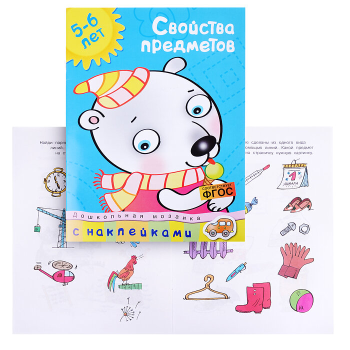 Свойства предметов. 5-6 лет. Дошкольная мозаика. С наклейками (Земцова Ольга Николаевна); Махаон Издательство, 2016