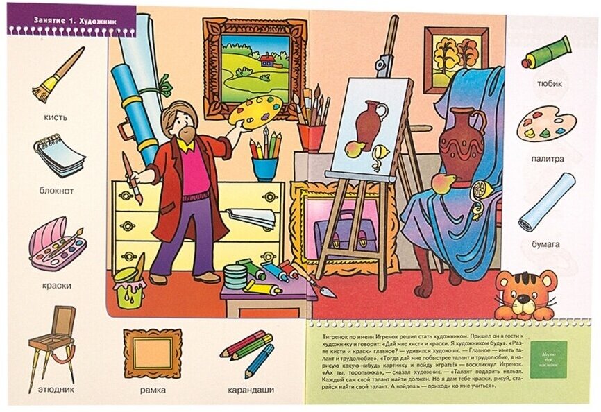 Мы покупаем уже вторую книжку Школы семи гномов про профессии (до этого брали для двухлетнего возраста) и вот приобрели для трёхлетнего. Мне очень понравилось, что иллюстрации профессий сопровождаются не только внешним видом человека-профессионала, но и соответствующей атрибутикой, что помогает малышу сформировать более полное представление, что нужно для той или иной работы, к примеру, художнику нужны карандаши, кисти, краски, этюдник и другие предметы. Красивые иллюстрации, плотная бумага, очень советую к покупке!
