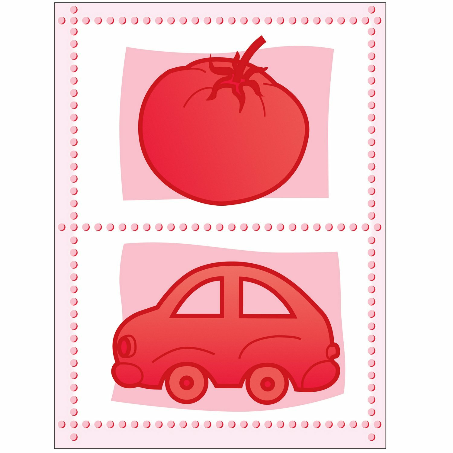 Разрезав лист по пунктиру на карточки можно научить малыша находить подобный предмет, сравнивать по цвету, находить лепесток подобного цвета и подкладывать карточку.