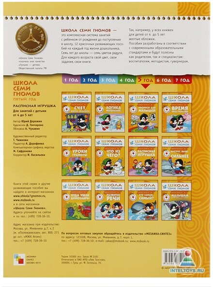 Книга "Расписная игрушка" развивающей серии "Школа семи гномов" предназначена для развития художественного вкуса и творческих способностей у малышей 4-5 лет.