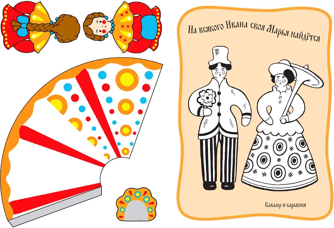 Книга содержит картонную вкладку - выкройку дымковской барыни.