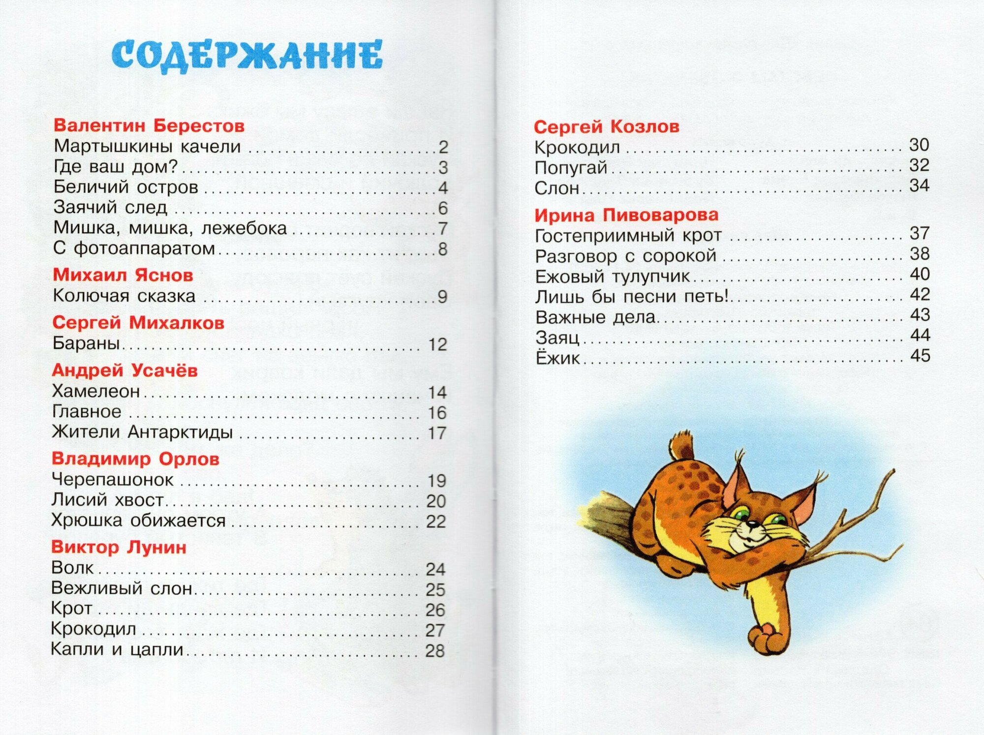 Картинка на обложке красивая, но она не отражает содержания книги. При взгляде на обложку возникает впечатление, что в сборнике стихи о том, чтр нужно беречь природу и заботиться о ней ("Покормите птиц зимой..." или еще что-то такое). А здесь просто надерганы стихи разных авторов, иногда слабые и неинтересные для детей или не в тему. Например, стихотворение Михалкова про баранов замечательное, но оно не "о зверятах", а о том, что важно не быть упертым как баран и уметь уступать. Интересно, кто редактор книги и есть ли он вообще... Иллюстрации тоже не все понравились