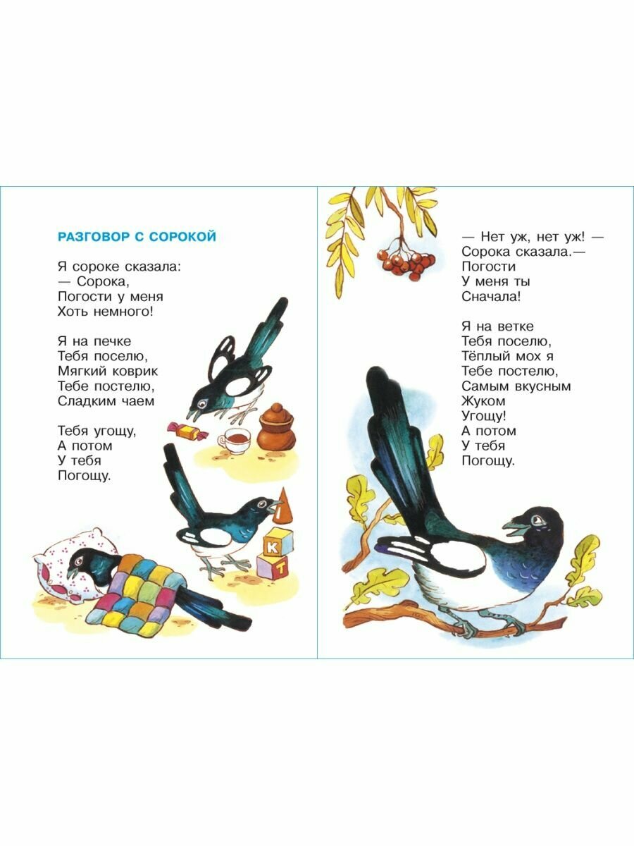 Отличная книжка для детей,хоть ребёнок ещё и маленький, меньше года. Радуется когда читаем стихи из этого сборника, картинки разглядывает, пытается уже сама переворачивать страницы, правда плохо получается. Спасибо огромное за такой приятный, небольшого размера сборник замечательных стихов. Очень многие впервые сама читала , муж тоже не слышал таких стихов ранее. Мы очень рады,что наша коллекция пополнилась на такую замечтальную книжку.