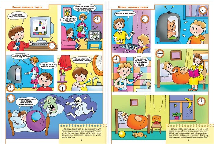 История про мальчиков представлена в виде комиксов, что сделает ее интересной для малыша.