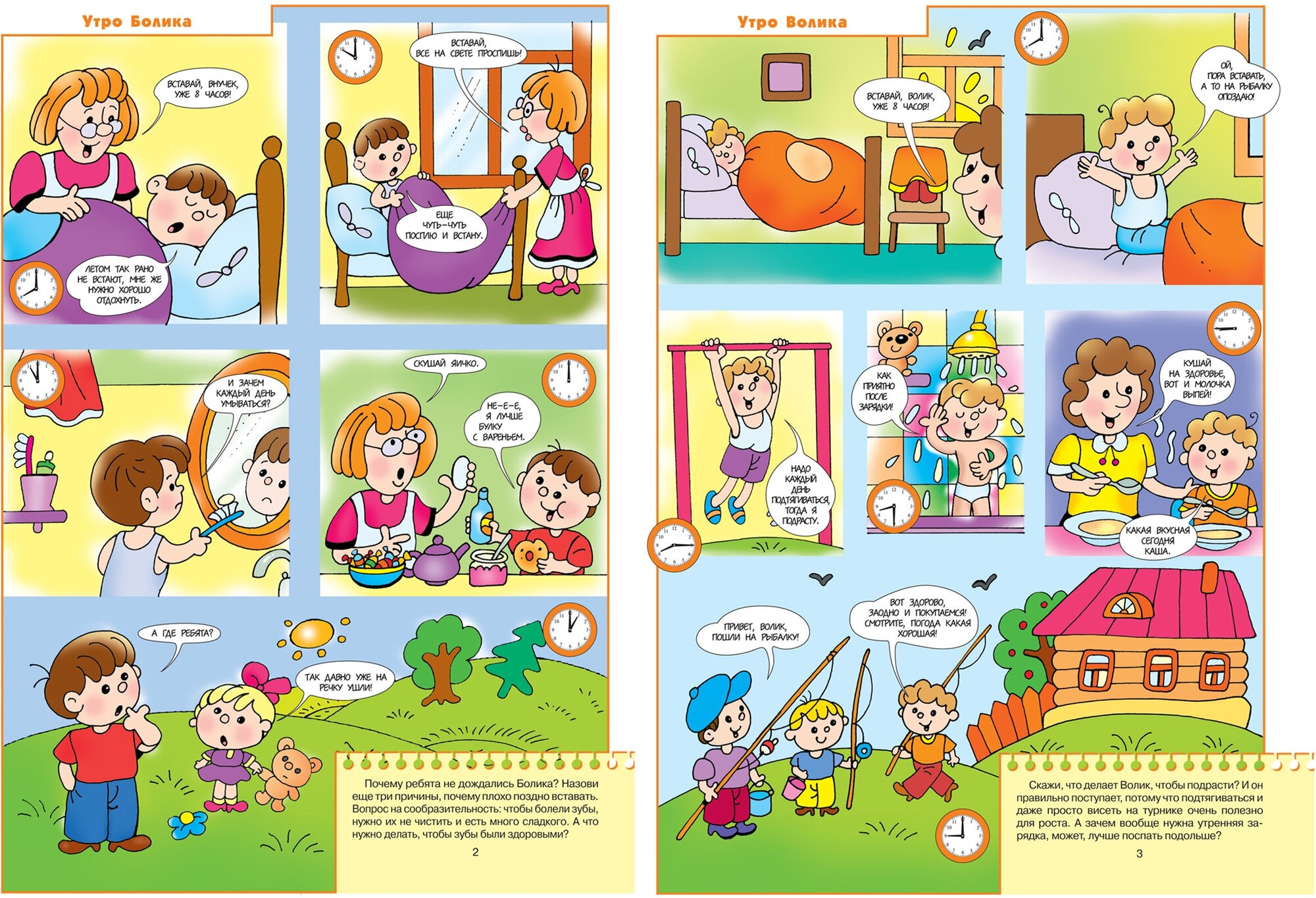 Из книги ребенок узнает, что полезно для зубов, как правильно питаться, зачем нужно делать зарядку.