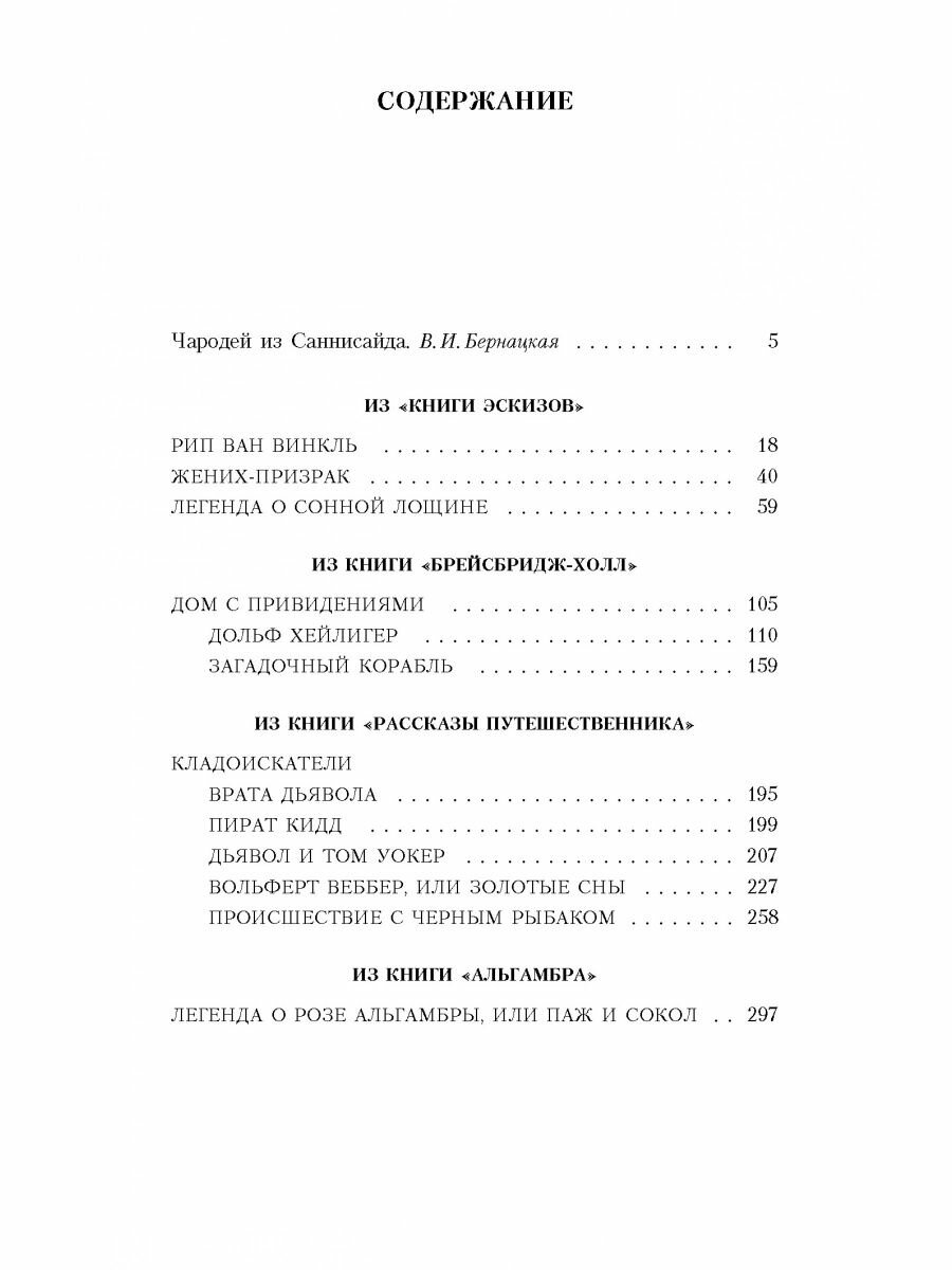 В книгу вошли новеллы первого классика американской литературы Вашингтона Ирвинга (1783-1859) из его лучших книг "Альгамбра", "Рассказы путешественника", "Брейсбридж-Холл" и "Книга эскизов". Герои этих увлекательных историй бродят в сумрачных лесах и долинах, встречают духов и привидений, разыскивают зачарованные клады… Новеллы Ирвинга ироничны и загадочны одновременно, написаны живым красочным языком и читаются на одном дыхании.