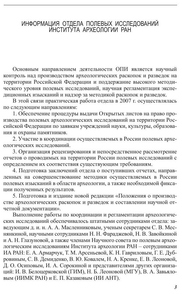 Выпуск ежегодника представляет собой свод информации о результатах полевых археологических исследований сезона 2007 г. Материалы сгруппированы в шесть разделов, в которых отражены работы российских археологов во всех регионах России и за рубежом. Публикации содержат сведения о наиболее интересных памятниках, объектах, находках. Для археологов, этнологов, краеведов.