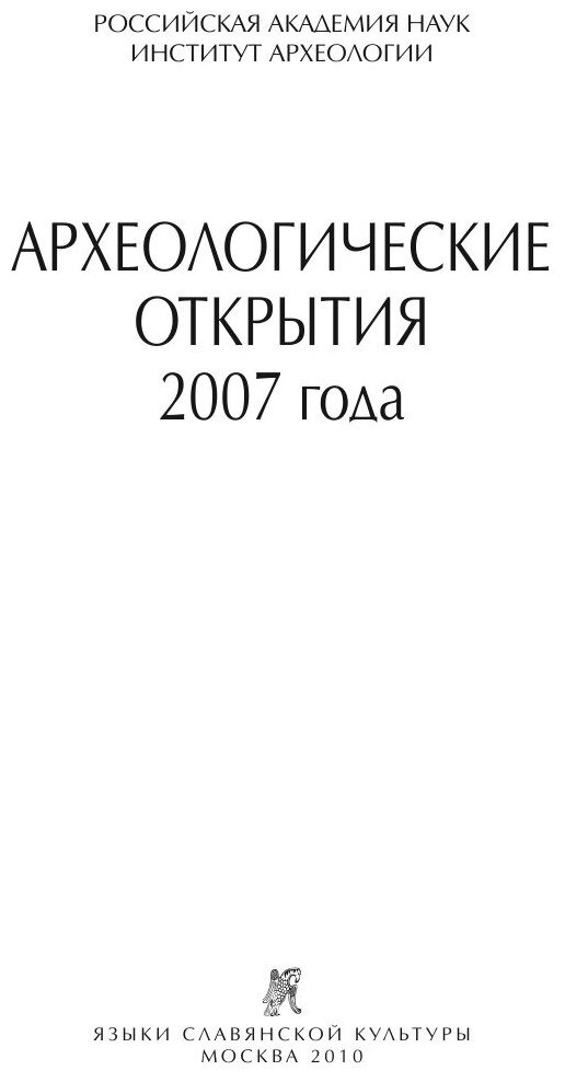 Археологические открытия 2007 года (Сборник статей); Языки Славянской Культуры, 2010