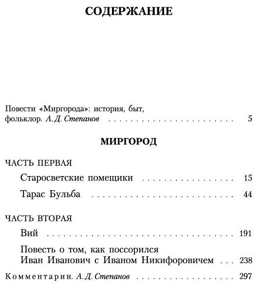 В настоящем издании публикуются повести Н. В. Гоголя, составившие его второй сборник - "Миргород": "Старосветские помещики", "Тарас Бульба", "Вий", "Повесть о том, как поссорился Иван Иванович с Иваном Никифоровичем". Как указал сам автор, сборник "Миргород" стал органичным продолжением "Вечеров на хуторе близ Диканьки". В нем воплотились размышления писателя о самобытности украинской культуры и украинского национального характера, о прошлом и будущем своей родины.