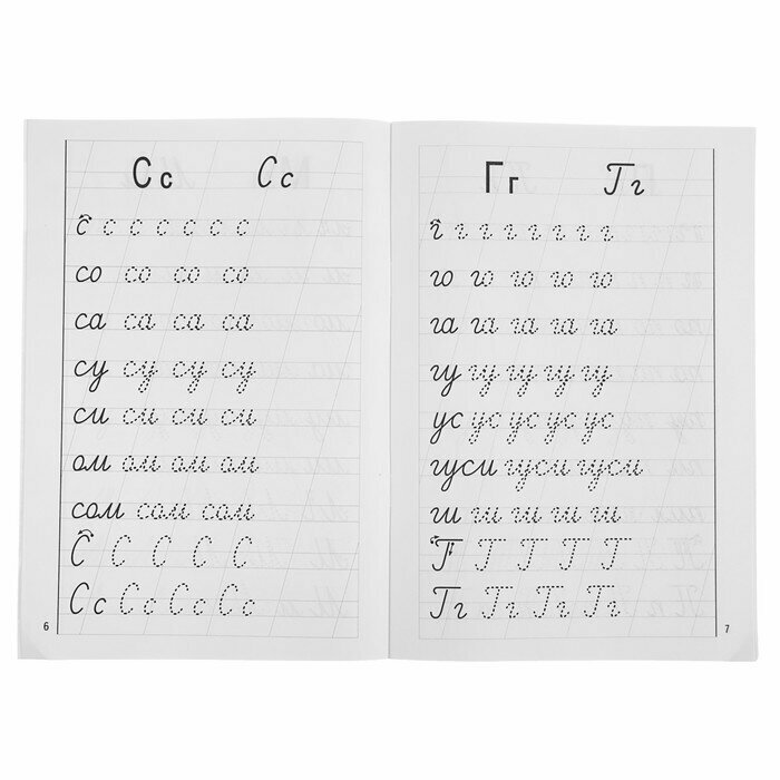 .На каждой странице рабочей тетради представлены образцы печатного и письменного написания буквы, что поможет ребенку сравнить их зрительные образы, запомнить образец письменной буквы и научиться писать и читать письменный текст.