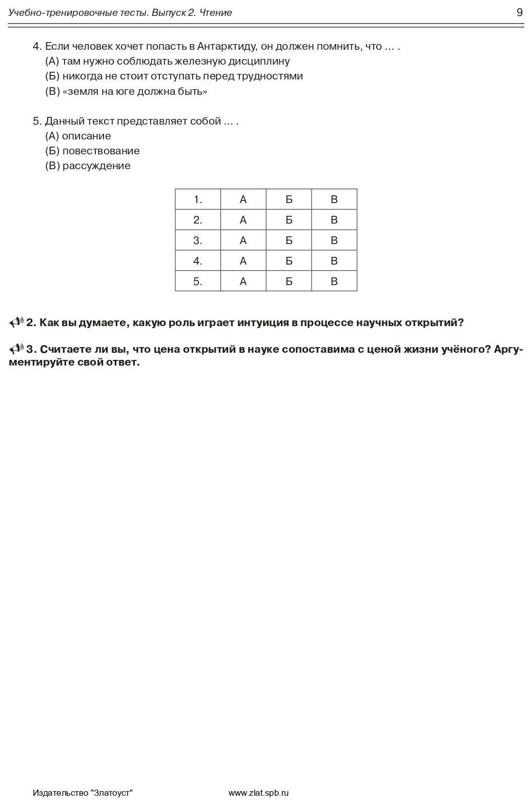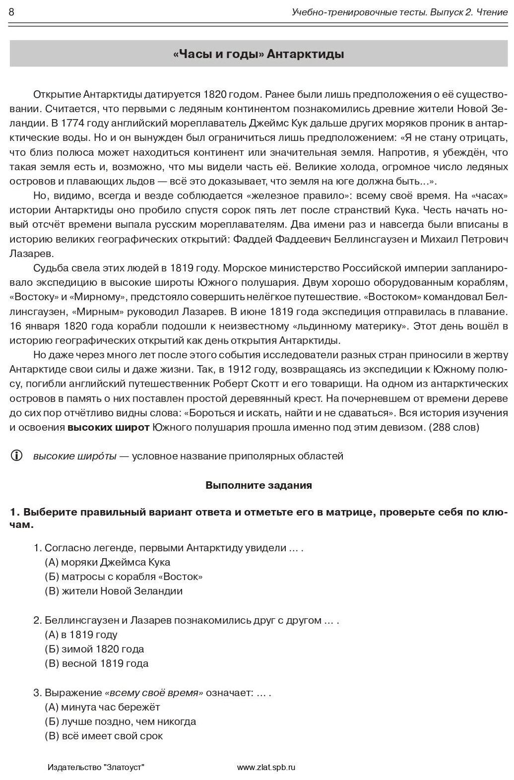 Учебно-тренировочные тесты по русскому языку как иностранному. Выпуск 2. Чтение : учебное пособие (Захарова А., Лукьянов Е., Парецкая М., Савченкова И., Шакирова Г.); Златоуст, 2017
