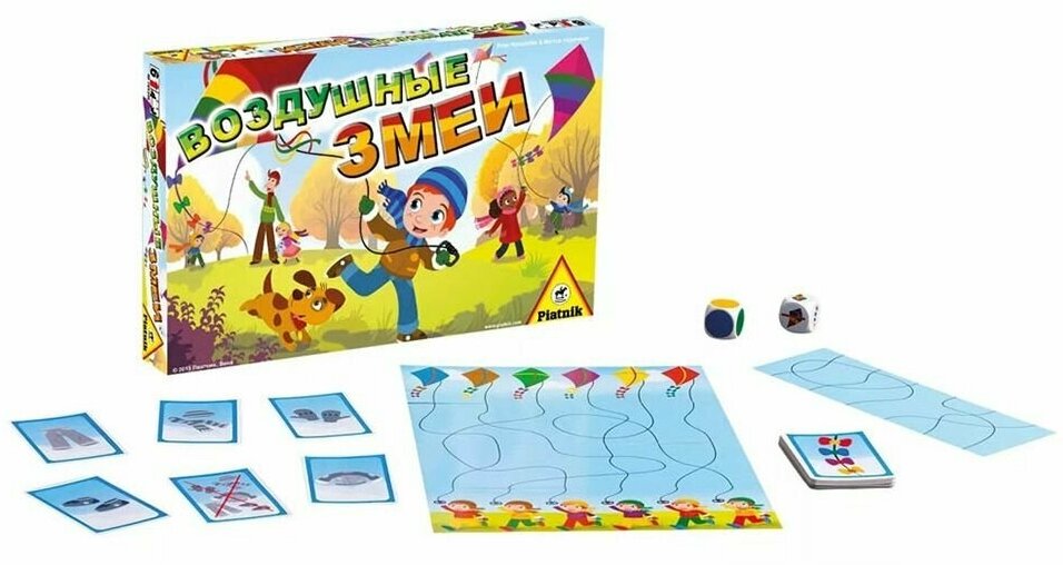 Игра "" Piatnik (Пятник)Занимательная и веселая игра от фирмы Piatnik станет отличным развлечением для детей. Она рассчитана на несколько игроков в количестве от 2 до 6 человек. Можно выбрать несколько уровней сложности. Сам процесс игры очень разнообразен и увлекателен. Нужно понять, какому герою принадлежит определенный воздушный змей. Это очень трудно сделать из-за большой путаницы веревок. Следить за полетом змеев нужно только глазами и нельзя касаться игрового поля руками.