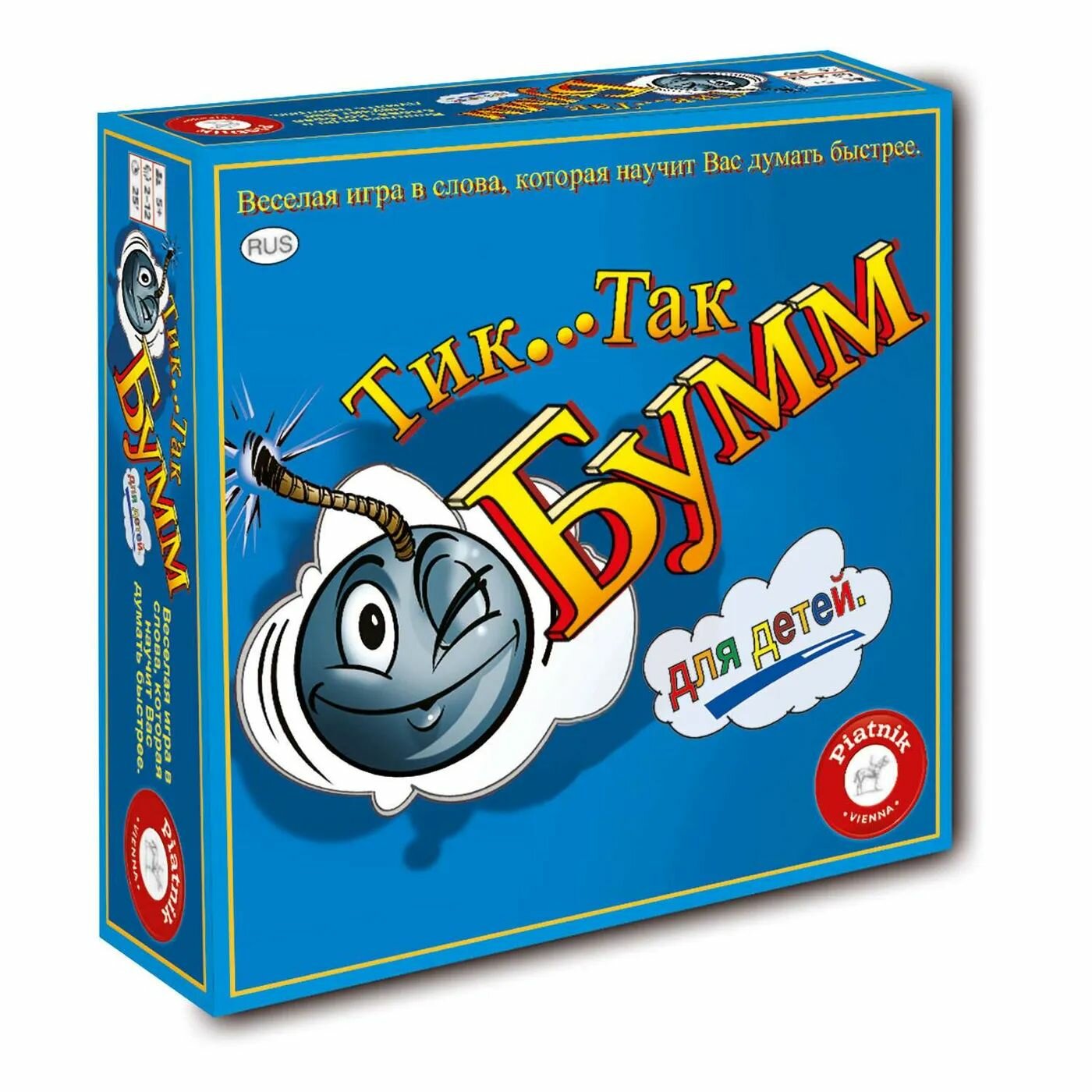 Настольная игра «Тик Так Бумм» для детей от компании Piatnic - это самая захватывающая, самая весёлая игра для большой компании! «БУМ!» - взрывной микс командной игры, адреналина, интеллектуального соревнования. Очень быстрая, очень интересная игра, которая не оставит скучать никого. Игра проходит в регламентированных временных рамках. В процессе игры каждый из игроков по очереди начинает брать карточки и как можно быстрее и понятнее объясняет своему командному игроку, что же изображено на карточке.