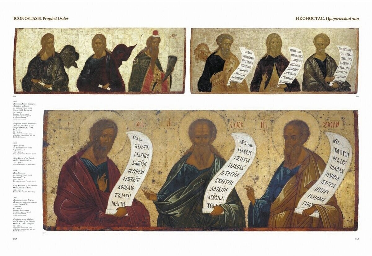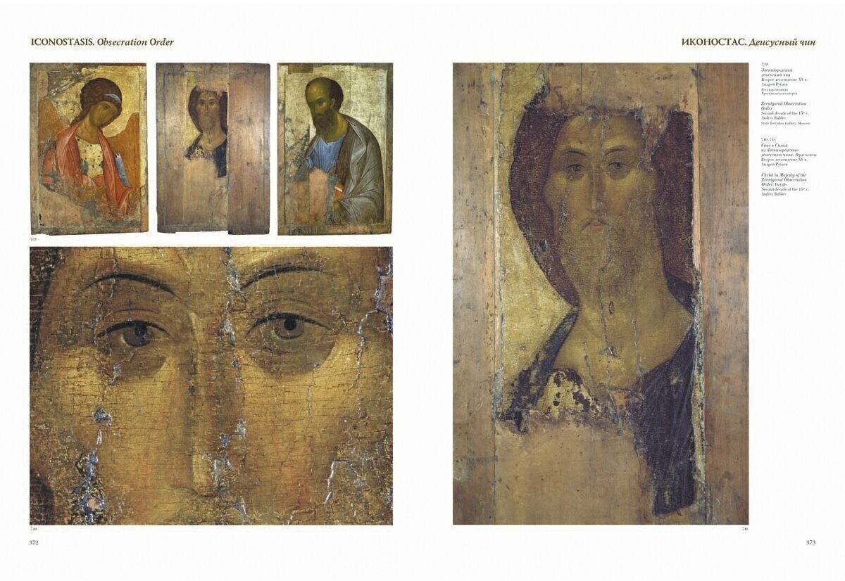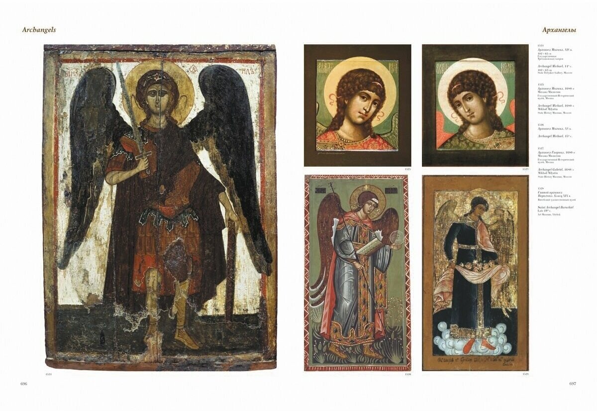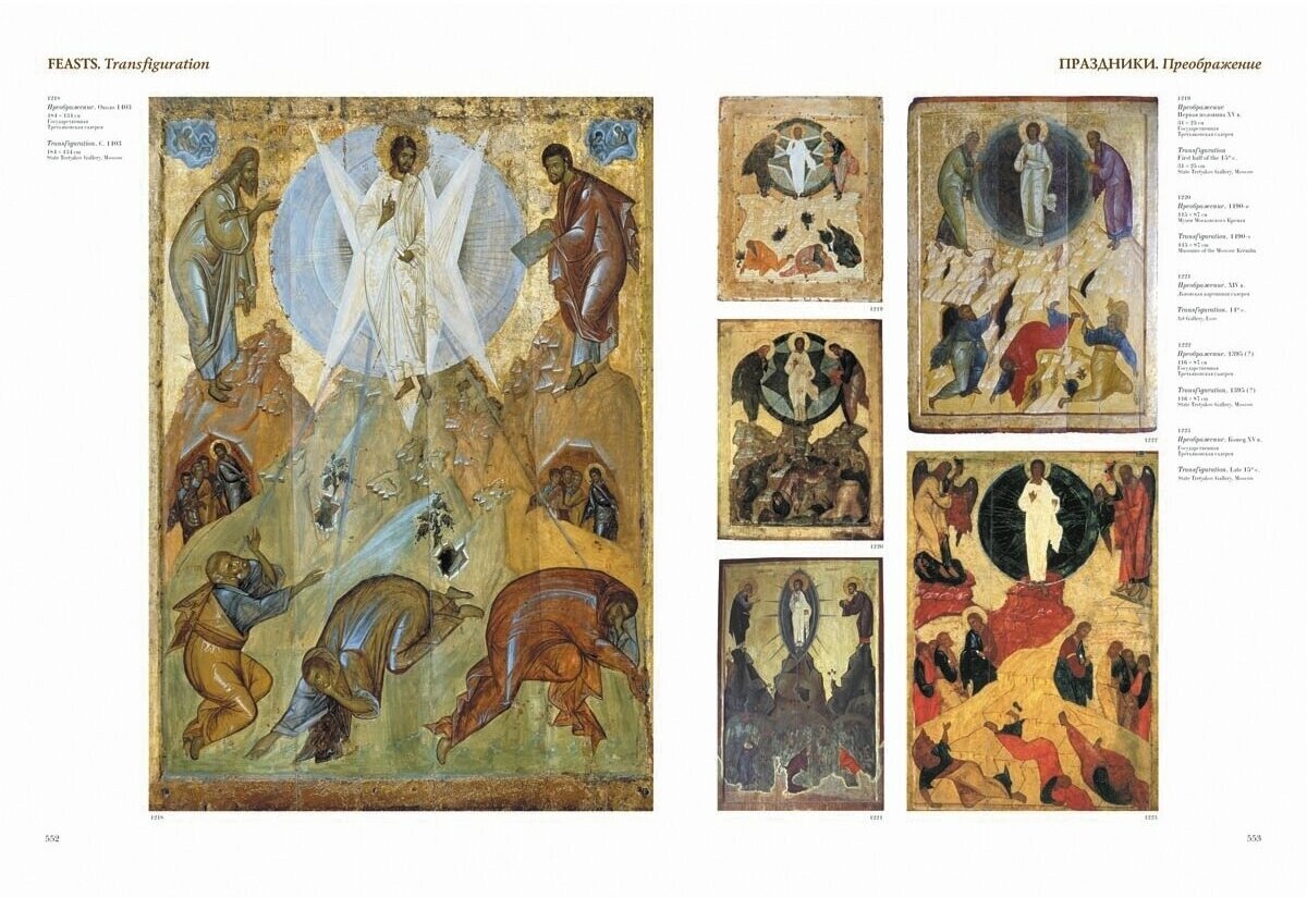 Подарочное издание в суперобложке и подарочном футляре.Самое полное собрание православных икон. Репродукции распределены по нескольким тематическим разделам (Богоматерь, Спас, Святые и др.) в хронологическом порядке, начиная с XIV века. В альбом включена статья князя Е.Трубецкого "Умозрение в красках" о православии, нравственности и церковной архитектуре.Тексты и подписи к репродукциям даны на русском и английском языках.