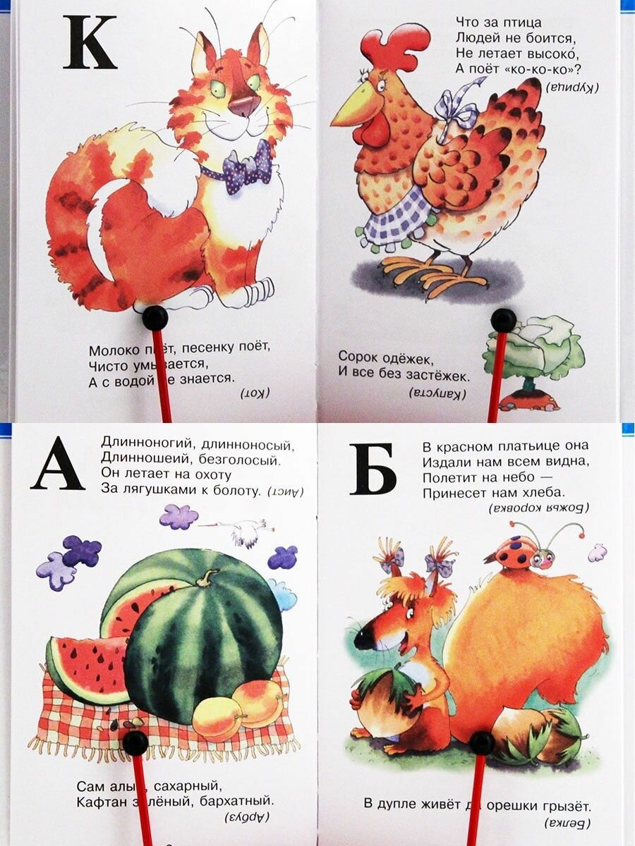 В данной книге содержится множество загадок к словам, начинающимся на все буквы алфавита. Странички плотные, иллюстрации милые, яркие и красочные, ребёнку интересно её читать и рассматривать картинки. Рекомендую к покупке, думаю, с такой книгой ребёнку очень понравится изучать буквы.