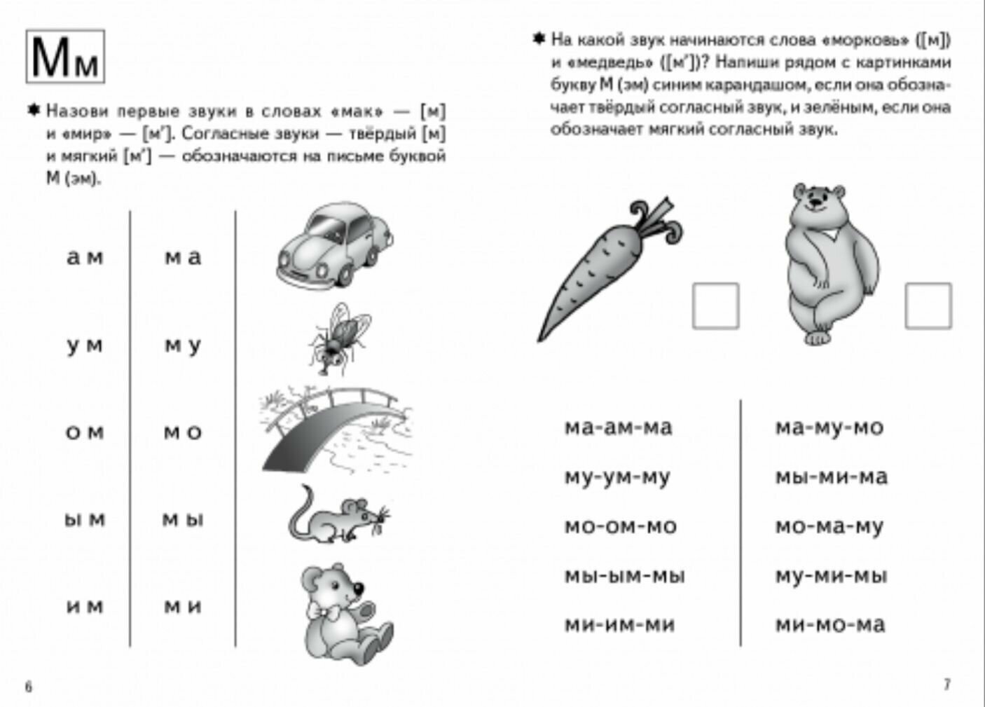 Уважаемые родители и педагоги! Предлагаем Вашему вниманию тетрадь, состоящую из 2 частей, которая поможет Вашему ребенку научиться читать. Уникальность этой тетради в том, что по ней могут заниматься как те дети, которые уже знают буквы, так и те, кто еще только знакомится с ними. Чтобы процесс обучения чтению не вызывал затруднений, необходимо называть букву не алфавитным названием ("бэ", "вэ" и т.д.), а звуками, которые она обозначает. Помогите ребенку научиться различать понятия "звук" и "буква". Звуки мы произносим и слышим, а буквы - это графические значки, обозначение звуков на письме. Буквы мы видим и пишем. Для слитного слогового чтения важным этапом является запоминание слогов-слияний (согласный+гласный). Для более образного запоминания слогов-слияний в первой части тетради рядом с каждым слогом выполнен рисунок. Когда алгоритм сливания звуков в один слог уже выработан, опорные рисунки становятся ненужными, поэтому во второй части тетради таких рисунков нет. Тетрадь рассчитана на совместную работу взрослых и детей.