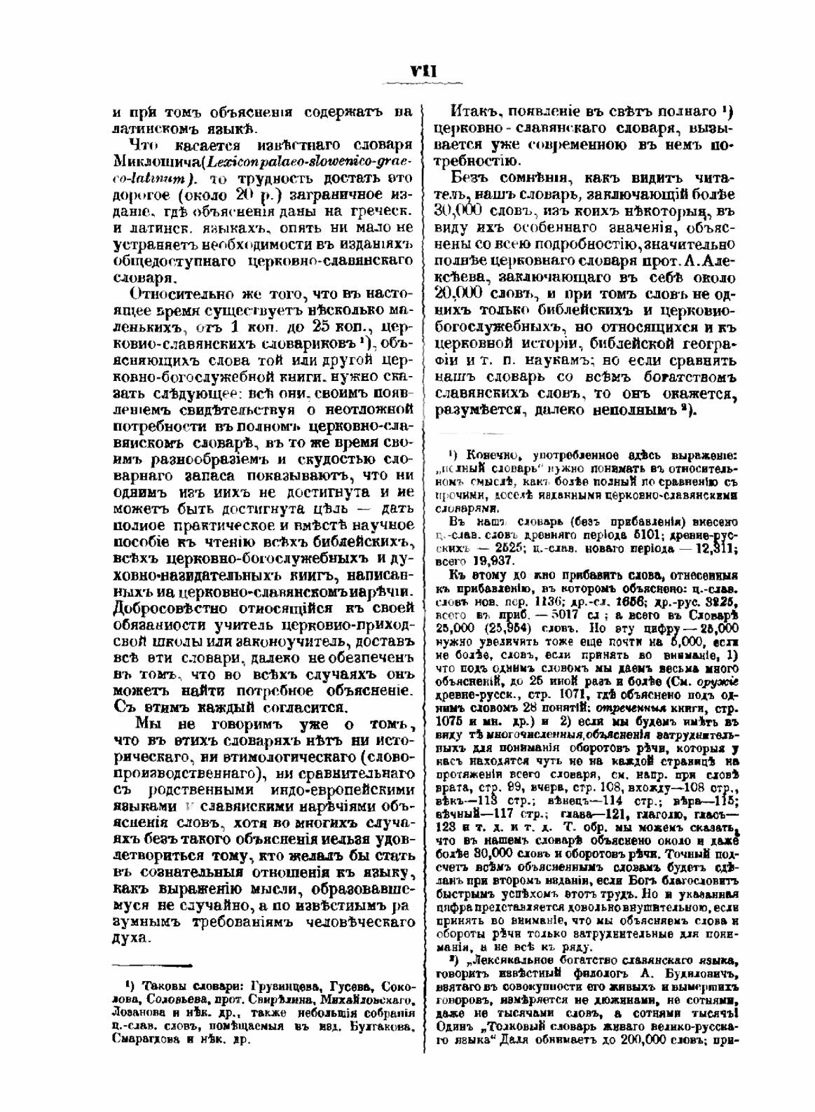 Словарь содержит объяснения малопонятных слов и оборотов, встречающихся в церковно-славянских и древнерусских рукописях и книгах, а именно: священно-библейских книгах Ветхого и Нового Заветов; церковно-богослужебных (Октоихе, Триодях, Минеях, Часослове, Псалтири, молитвослове, Требнике и проч.); духовно-поучительных, например, в Прологе, Патерике, Четьих-Минеях, творениях св. отцов и проч.; церковно-канонических книгах древней духовной как переводной, так и самобытной письменности, а также в памятниках светской древнерусской как переводной, так и самобытной письменности, как то: в летописях, изборниках, судных грамотах, уложениях, договорах, былинах, песнях, пословицах и других поэтических произведениях древнерусской письменности, начиная с X до XVIII вв. включительно.В ограниченном объеме словарь может быть использован для изучающих церковнославянский язык (при этом этимологическую часть словарных статей, в особенности, попытки сравнительно-исторического анализа с привлечением индоевропейского языкового материала следует пропускать), для священнослужителей, катехизаторов, для всех интересующихся русской церковной историей и церковной культурой. Для филологов и специалистов, изучающих становление и развитие науки о языке в России. Издание представляет определенный (ограниченный) интерес для готовящихся к поступлению в духовные школы, для воспитанников духовных учебных заведений, студентов богословских вузов и факультетов (учебный предмет «Церковнославянский язык»).