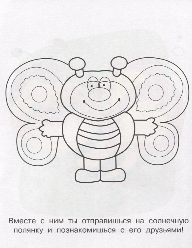 Предлагаем вам раскраску для малышей "Солнечная полянка. Мотылек Лелик" с яркими цветными картинками, глядя на которые ваш ребенок сможет раскрасить черно-белые самостоятельно.