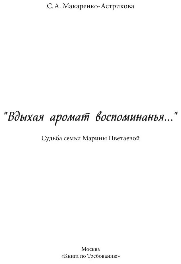 "Вдыхая аромат воспоминанья…"/ Судьба семьи Марины Цветаевой (Макаренко–Астрикова Светлана Анатольевна); Книга по Требованию, 2014