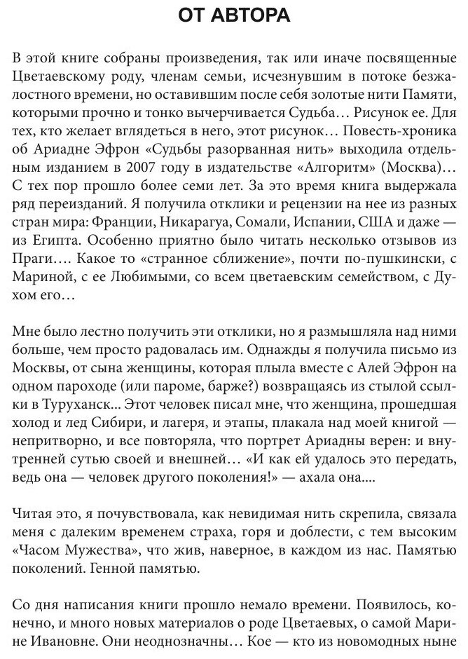 В этой книге собраны произведения, так или иначе посвященные Цветаевскому роду, членам семьи, исчезнувшим в потоке безжалостного времени, но оставившим после себя золотые нити Памяти, которыми прочно и тонко вычерчивается Судьба...В
