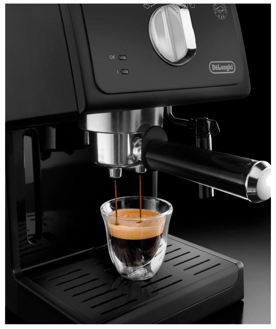 Кофеварка DELONGHI & это настоящий подарок для тех, кто просто не представляет своей жизни без ароматного и бодрящего кофе, ведь она с легкостью поможет вам приготовить капучино, эспрессо, а также обладает возможностью одновременного приготовления двух порций. Удобная конструкция устройства позволит вам с легкостью мыть кофеварку, так как отсек для капель, поддон, резервуар для воды удобно снимаются. А специальная система автоотключения обеспечит безопасность и удобство в использовании.