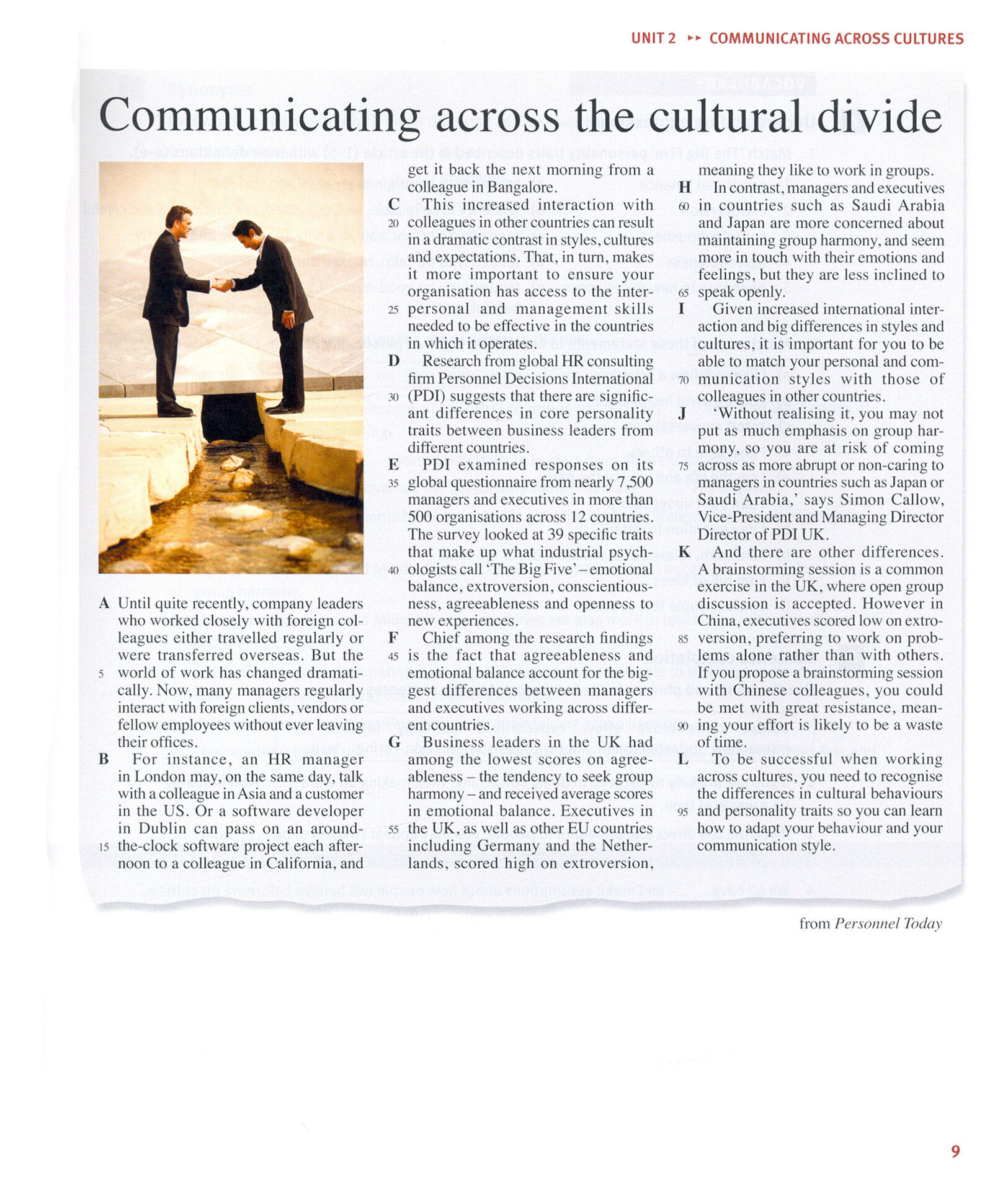 Working Across Cultures is one of a range of new specialist titles designed for use on its own or with the Market Leader series. Ideal for students who need to learn the language of more specialised areas of business English, the book focuses on the reading skills and vocabulary development required for Working Across Cultures.