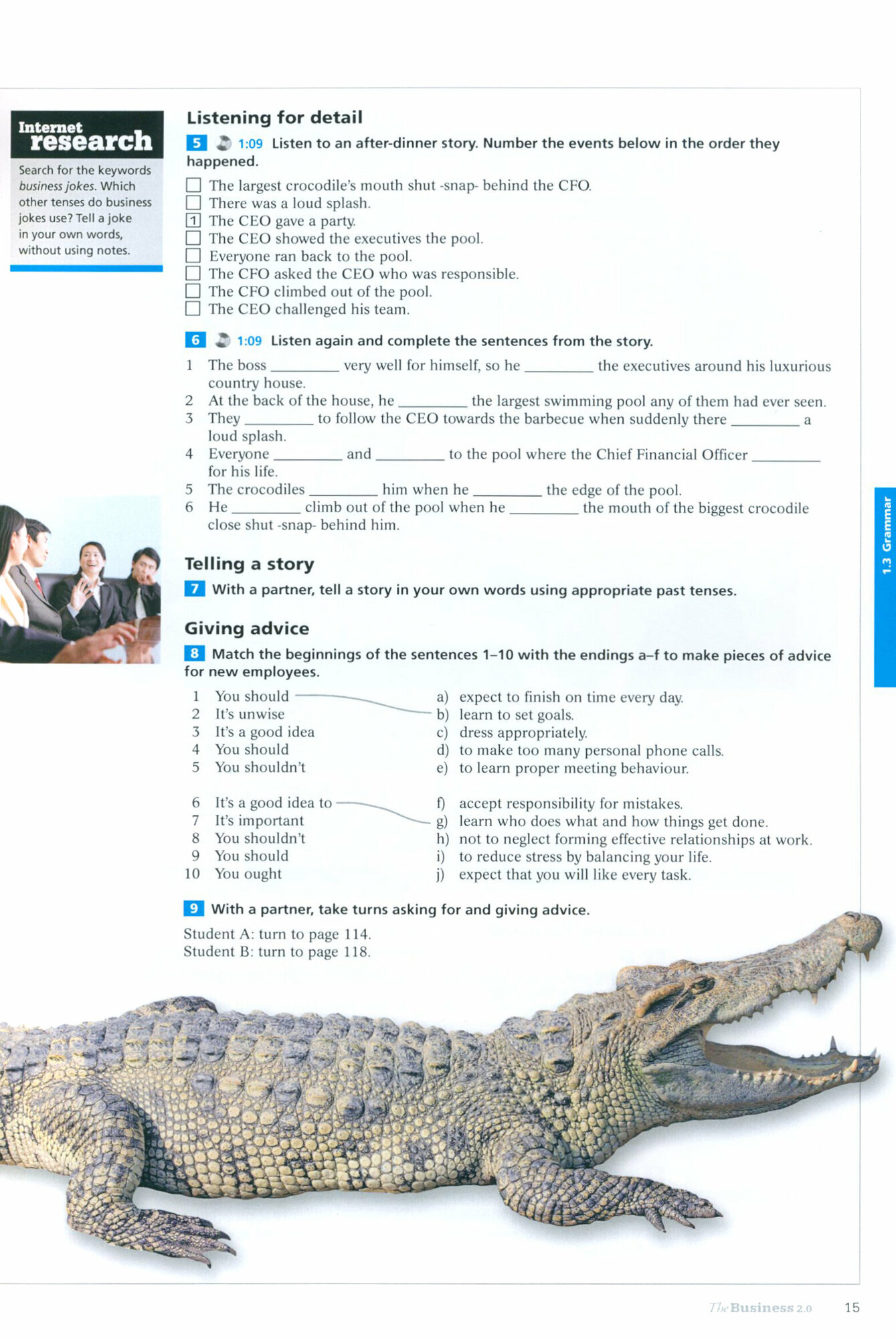 The Student’s Book introduces learners to the basic business principles and vocabulary, allowing them to build solid foundations and self-confidence. There is a strong focus on ‘intangible’ business skills such as emotional intelligence and interpersonal abilities, along with language, technologies, business and interpersonal skills.