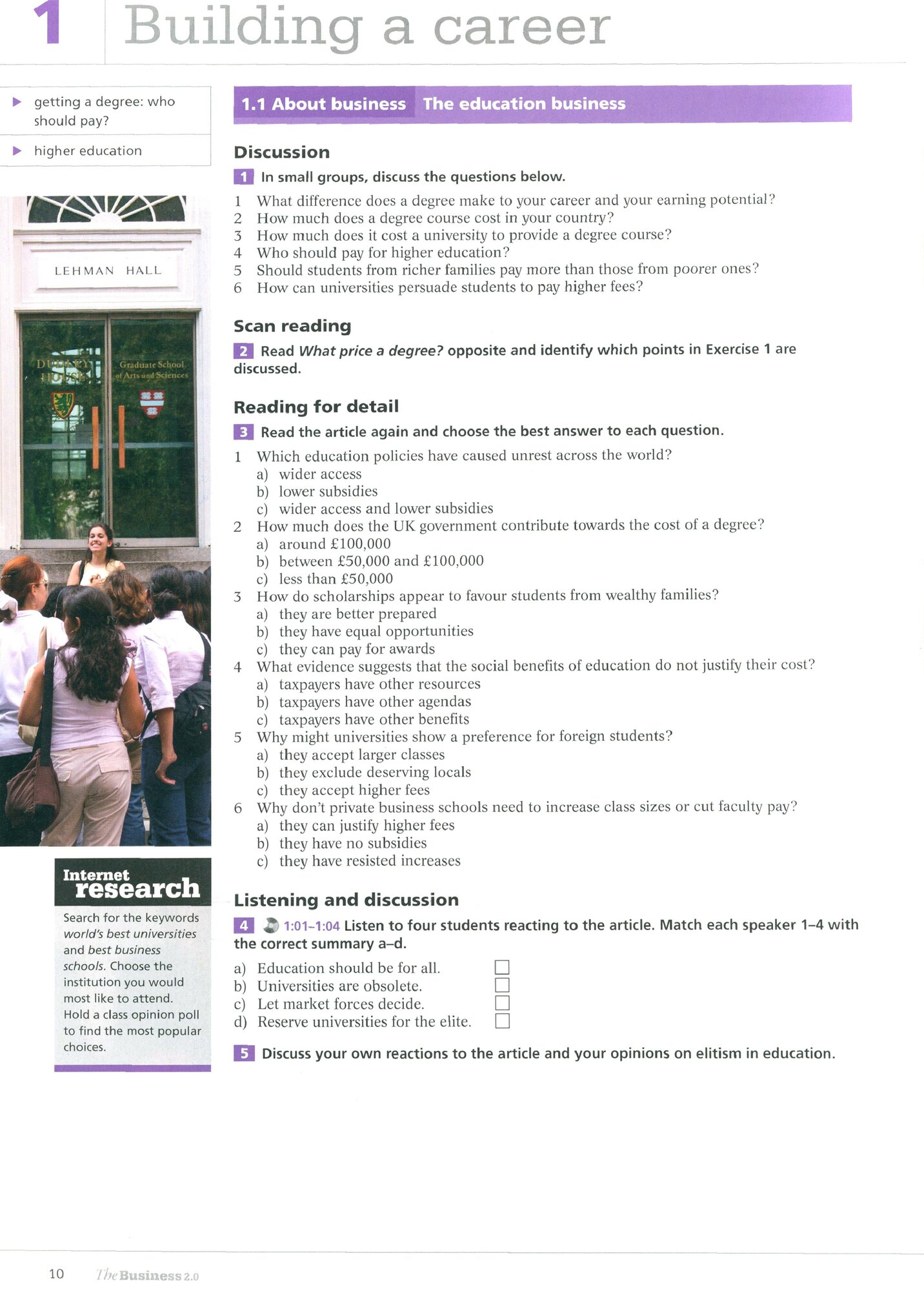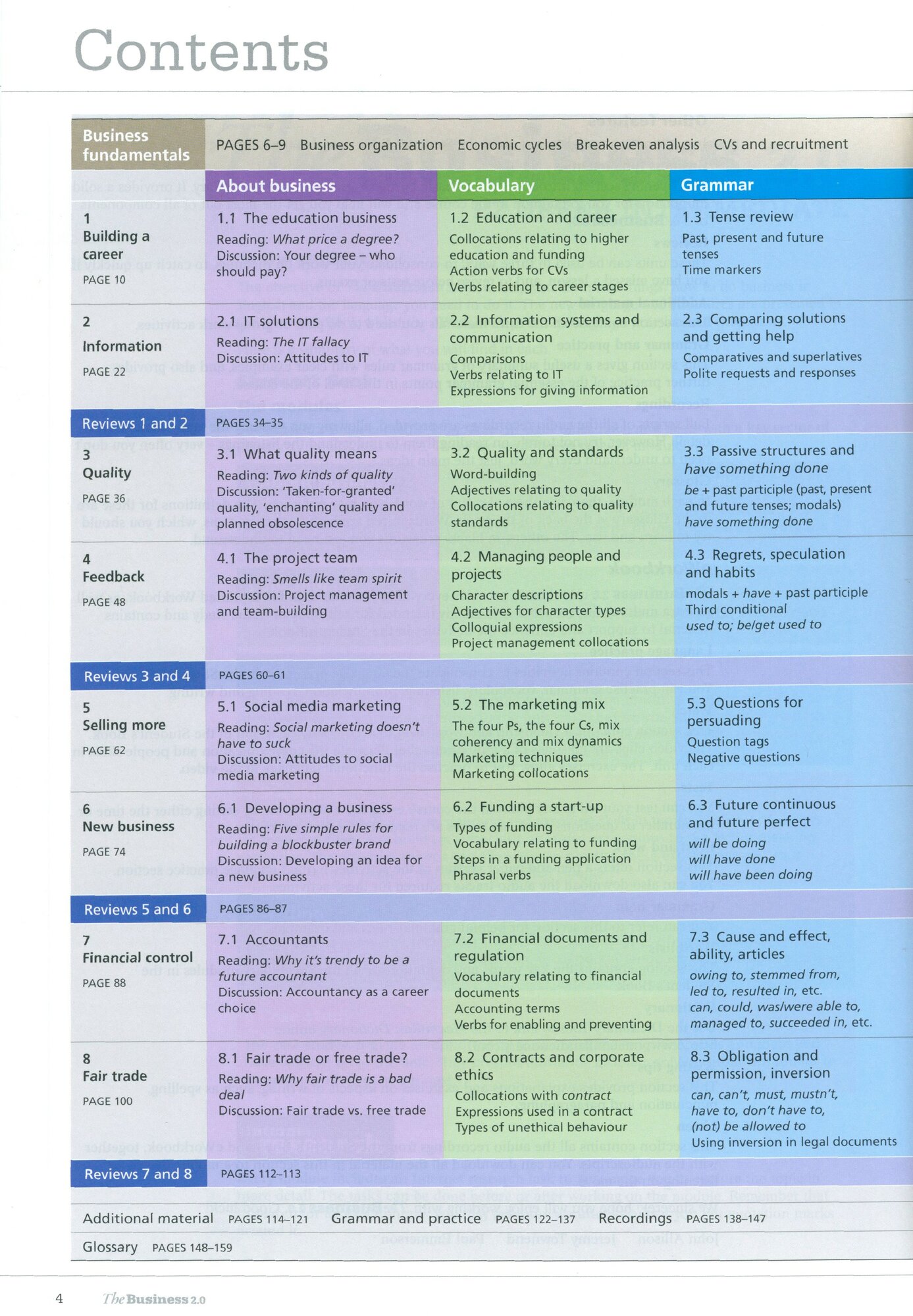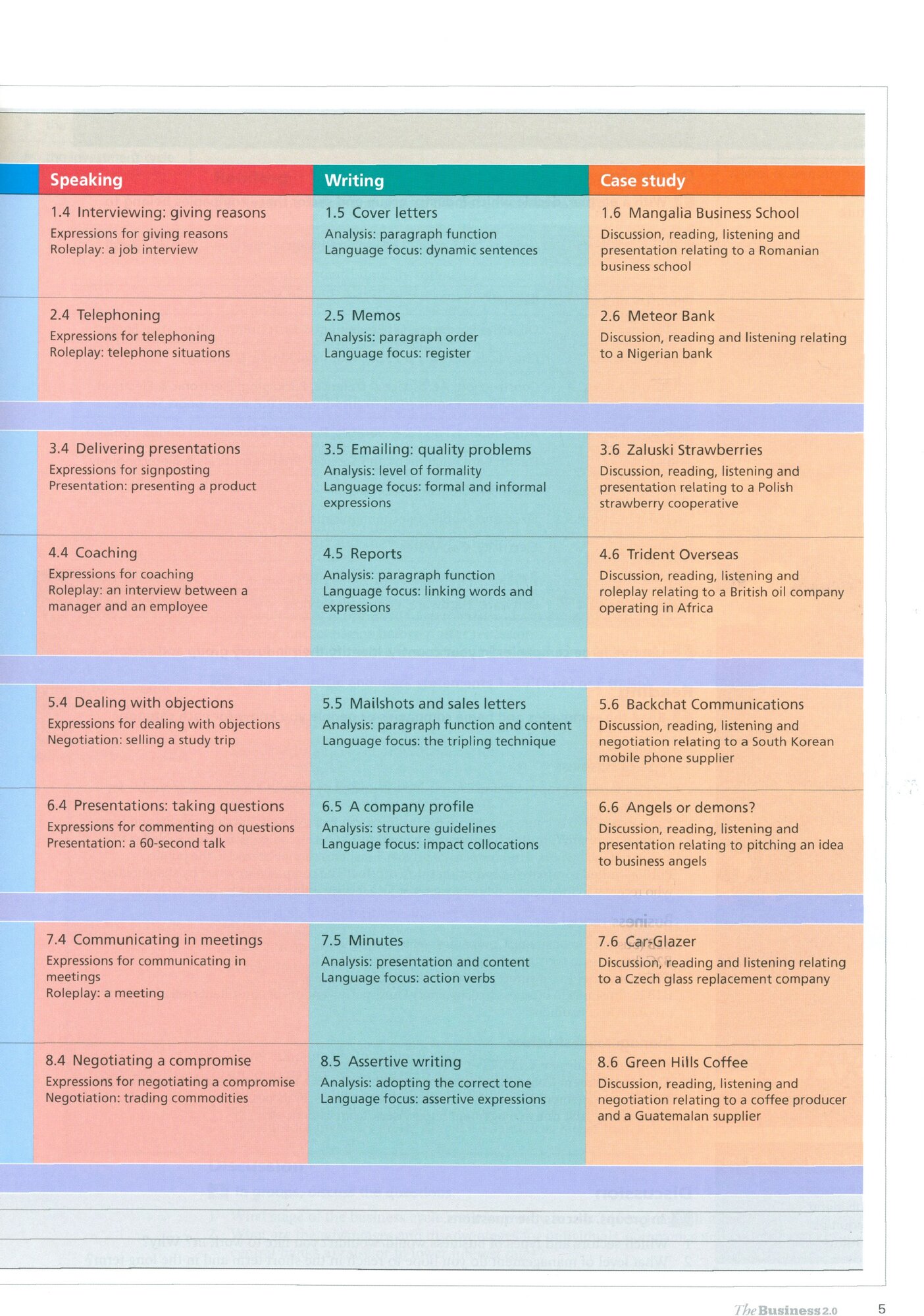The Student’s Book introduces learners to the basic business principles and vocabulary, allowing them to build solid foundations and self-confidence. There is a strong focus on ‘intangible’ business skills such as emotional intelligence and interpersonal abilities, along with language, technologies, business and interpersonal skills.