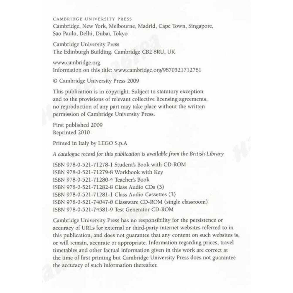 The Students Book provides approximately 80 hours of core teaching material, which can be extended to 120 hours using the photocopiable resources and extra ideas in the Teachers Book. An interactive CD-ROM, which comes free with the Students Book, encourages learner autonomy with exercises in all language areas, video, games, customisable tests and a progress chart. New for the Advanced level of face2face, Accurate Writing sections help students overcome typical problems such as spelling and punctuation. Whats more, Real World lessons help learners become more spontaneous, natural communicators by teaching practical language as well as further developing learners reading, writing, listening and speaking skills. ISBN:978-0-521-71278-1