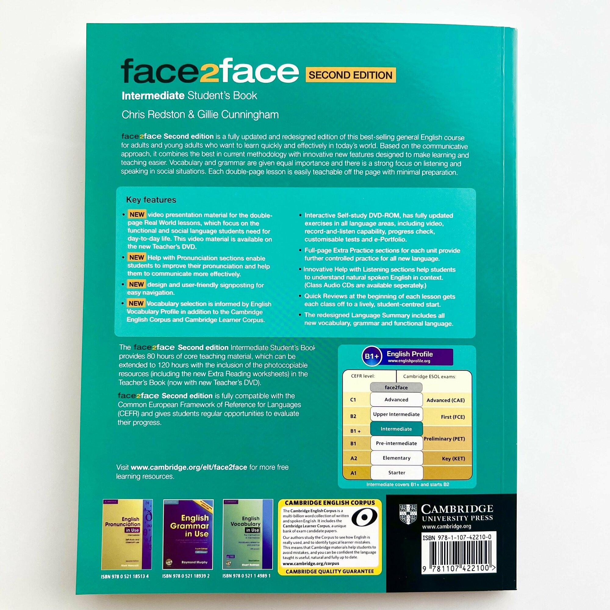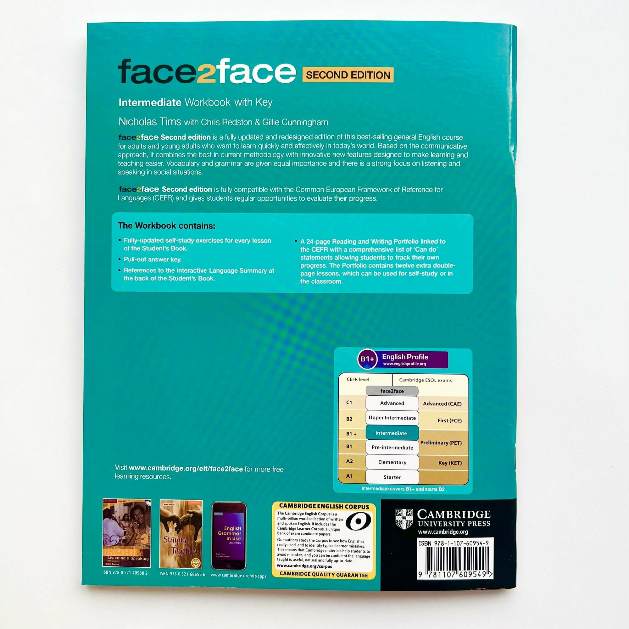 face2face Second edition is the flexible, easy-to-teach, 6-level course (A1 to C1) for busy teachers who want to get their adult and young adult learners to communicate with confidence. face2face Second edition vocabulary selection is informed by Cambridge English Corpus as well as the English Vocabulary Profile, meaning students learn the language they really need at each CEFR level. The Intermediate Level Workbook with Key offers additional consolidation activities as well as a Reading and Writing Portfolio for extra skills practice. A Workbook without Key is also available.