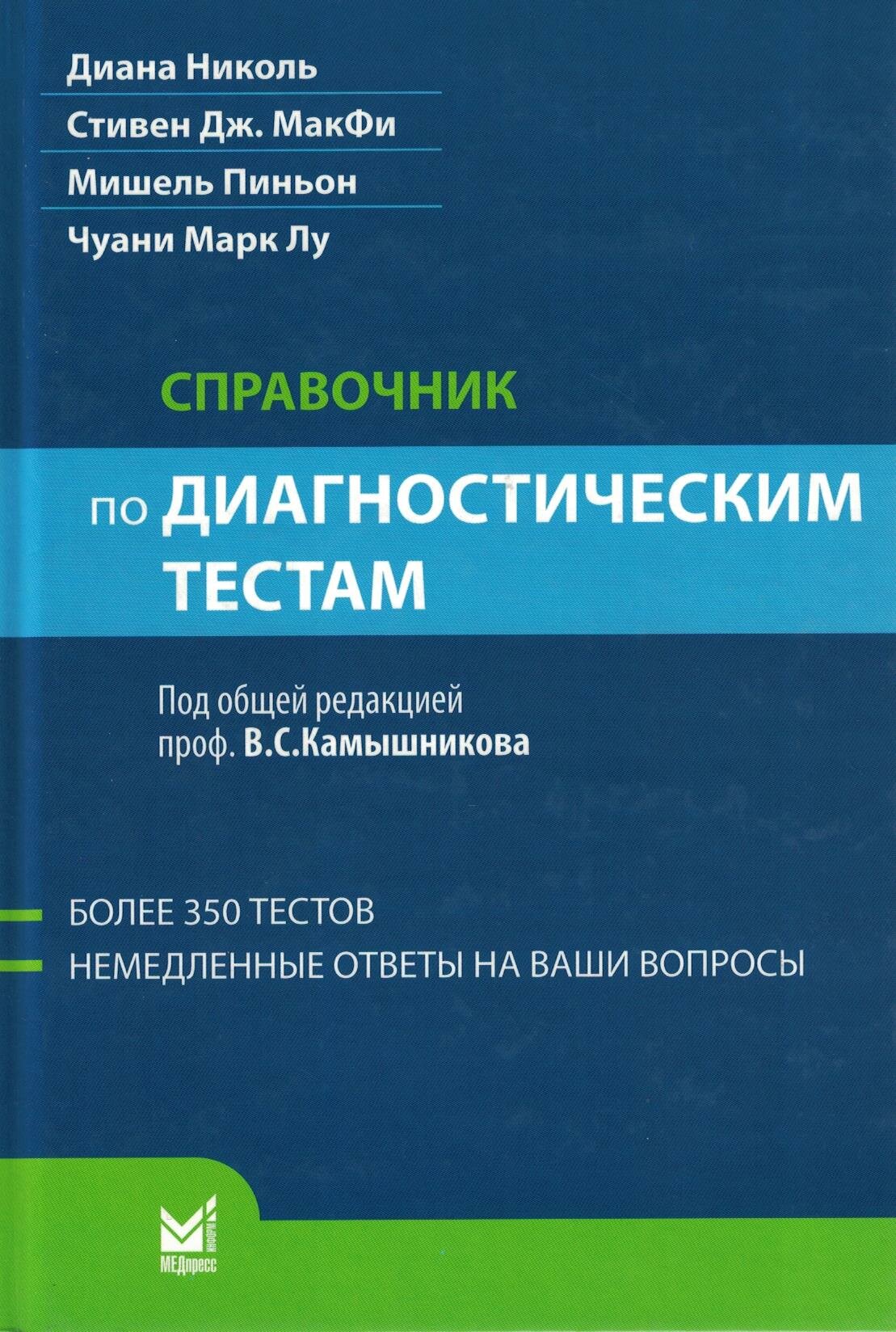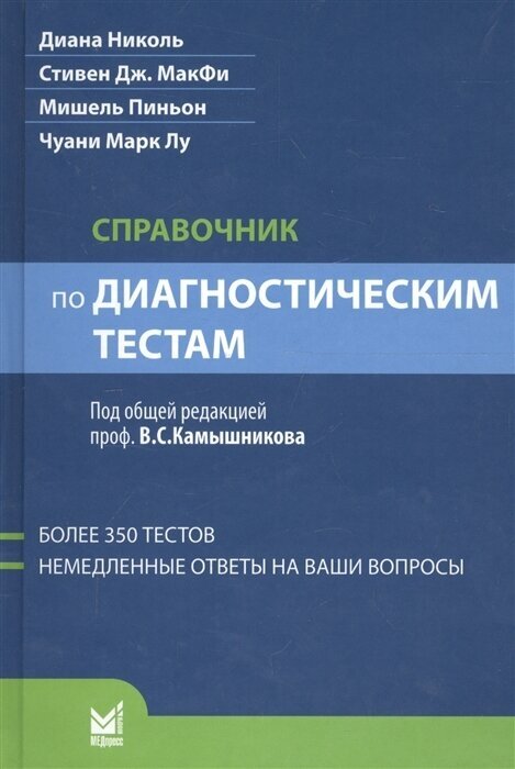 "Справочник по диагностическим тестам" - уникальное учебно-методическое и практическое пособие для специалистов в области клинической медицины. В нем в краткой, ясной форме представлена информация не только о клинико-лабораторных (общеклинических, гематологических, биохимических, коагулологических, гормональных, иммунологических, серологических, молекулярно-биологических) методах исследования, но и о многих других, весьма необходимых для постановки точного диагноза заболевания. Изложены сведения о применении микробиологических, вирусологических, паразитологических методов анализа, современных технологиях диагностической визуализации (компьютерной томографии, рентгенологическом, ультразвуковом, магнитно-резонансном, радиоизотопном исследованиях), электрокардиографии. Структурное построение книги позволяет получить цельное впечатление об алгоритме диагностики конкретных патологических состояний, сведения о которых систематизированы на основе учета анатомической локализации патологического процесса.