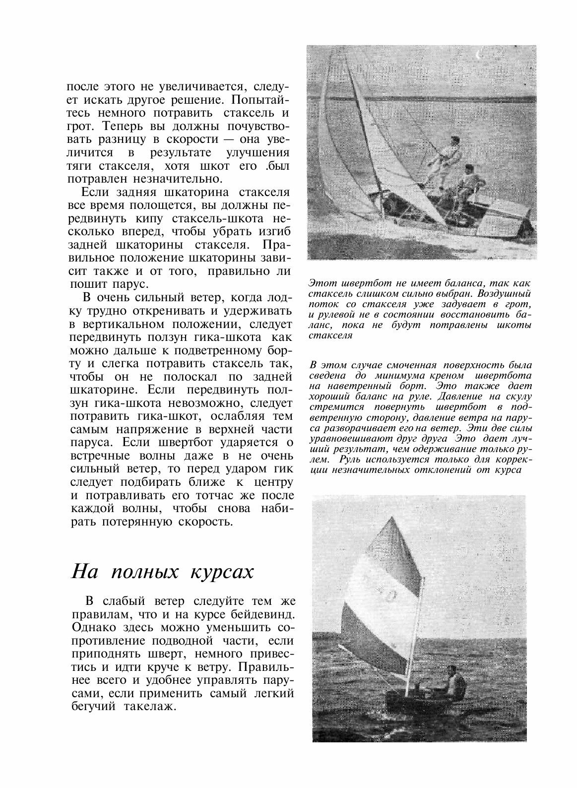 Автор в своей книге делится с читателями многолетним опытом спортизной тренировки и участия в парусных гонках, раскрывает различные стороны подготовки яхтсмена, описывает ситуации, в которых порой оказываются участники соревнований, разбирает многочисленные тактические задачи и приемы, анализирует тактику парусных гонок и технику управления швертботами и килевыми яхтами.