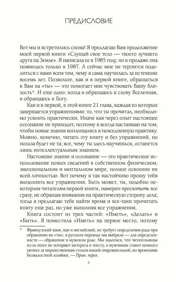 Хорошая книга самопомощи! Психологическая работа над собой. Как гармонизировать свою жизнь, сложить в своей голове все по полочкам, а в следствии этого обрести тело, которое нравится вам. Ментальное очень тесно связанно с физическим. Очень хорошо проработана тема гельштатов, к каждой главе вы найдёте упражнения на этот счёт, которые помогут вам измениться к лучшему. Я считаю, что это достойная книга, не заменит, конечно, психолога, но если вы готовы работать над собой - то, безусловно, вы не ошибётесь, если прочтёте.