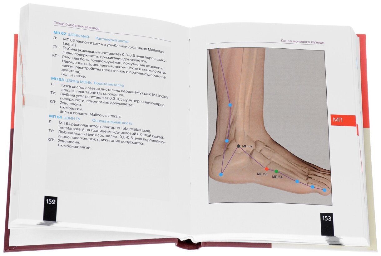 Отличный атлас. Дается описание точки, номер по меридиану, китайское название, ее основное применение, нахождение, глубина и вектор укалывания, возможность прижигания.