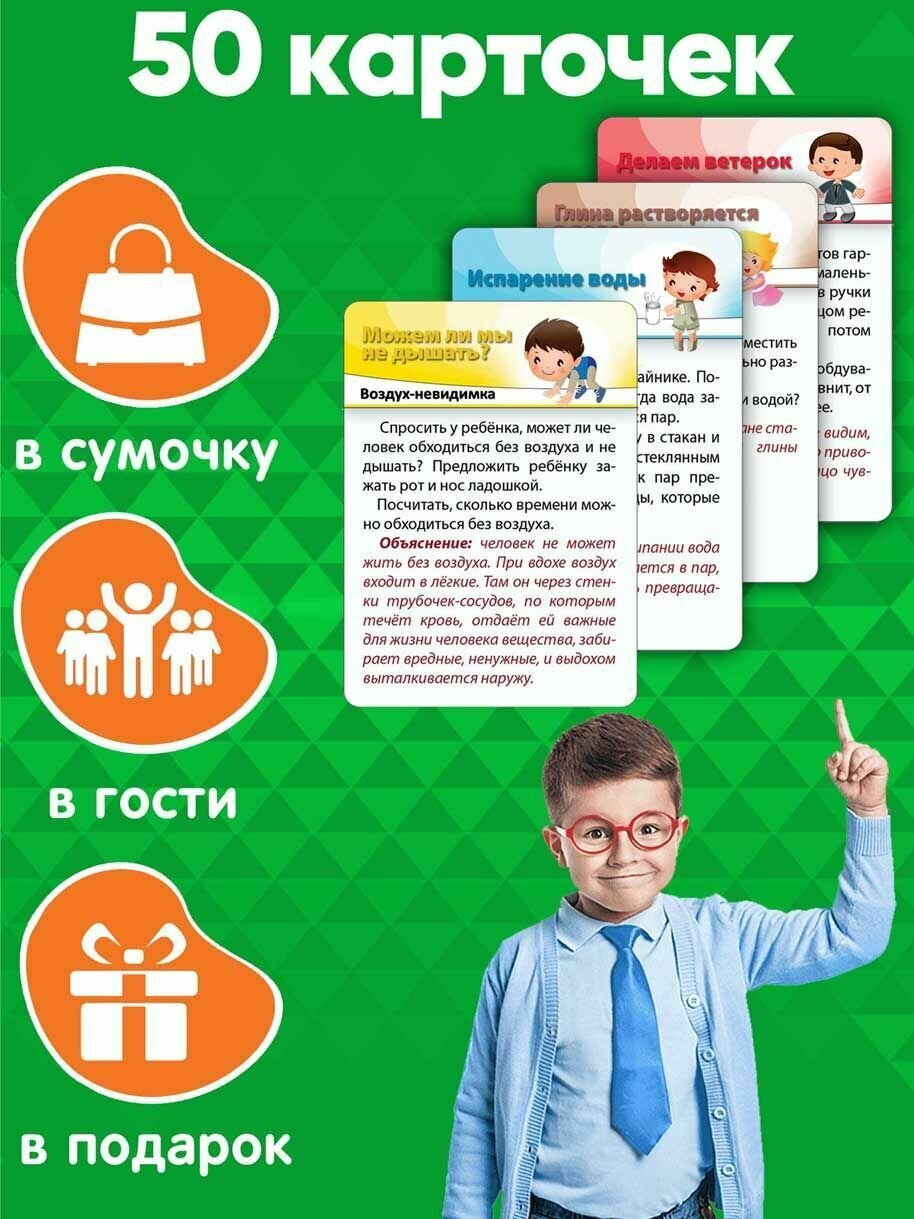 !!! Карточки двусторонние, по 2 опыта на карточке (обычно на разные темы). Тема каждой указана сверху (удобно при поиске). Карточки в целлофановой упаковке.
