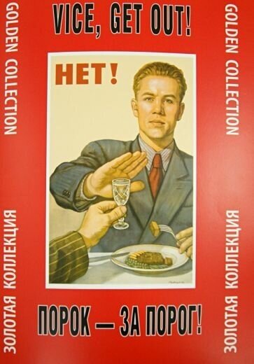 Новое обращение в плакате к теме нравственности вызвали социальные процессы, происходившие в стране в середине 1950-х годов. Сотни тысяч молодых людей, направившихся на освоение целинных земель и природных богатств страны, встретились с сотнями тысяч заключенных, которые полтора десятилетия валили лес и добывали для страны уголь, уран и золото. Нравственные устои пошатнулись, а потребление доступного алкоголя ограничивал только невысокий уровень доходов населения. В эти годы блестяще проявился талант В. Говоркова - одного из выдающихся мастеров, по-настоящему оцененному нами только сегодня. Бесспорным его шедевром стал плакат "Нет!" (1954), герой которого выбрал трезвый образ жизни. Однако плакаты на стенах чайных и столовых, где свободно продавалось спиртное, не могли служить нравственным тормозом. Одновременно с ограничением продажи водки началась кампания по борьбе с пьянством, хулиганством и зарождавшейся наркоманией. Плакаты противопоставляли присущие коллективу передовые идеалы порокам - "пережиткам прошлого", заблуждениям, ставшим результатом неправильного воспитания в семье. Художникам, по выражению В. Маяковского, заказывался "портрет хулиганий". Молодежь, рожденная в социалистическом обществе, уже не могла быть публично объявлена его "врагом". Спекулянты, самогонщики, пьяницы, хулиганы, тунеядцы и расхитители стали объектом трудового перевоспитания - "плесенью". В 1961 году была принята Программа КПСС с "Моральным кодексом строителя коммунизма", где перечислялись "пережитки прошлого", с которыми надо бороться. "Искореним это зло!", "Позор!", "Вон!", "Порок - за порог!" - вот лозунги плакатов тех лет. Порогом, за который отправлялись "носители пороков", была стокилометровая зона вокруг столицы. Создатели плакатов обладали достаточным здравым смыслом и чувством юмора, чтобы умело сохранить художественную ткань своих работ даже в условиях жестких идеологических рамок. В стране установился хрупкий баланс интересов личности и государства: продажа спиртного после "часа волка" (11 часов утра) давала поступления в местные бюджеты, самогон варили из всего, что растет, повсюду распивали "на троих", а провинившимся в одночасье обеспечивалось судом административное наказание в виде "пятнадцати суток" общественных работ. Начало 1980-х годов с выселением тунеядцев, борьбой с нетрудовыми доходами и созданием "Общества трезвости" стало последним этапом борьбы за нравственное очищение советского общества. Обличительные плакаты украсили стены медвытрезвителей, диспансеров и пресловутых ЛТП (лечебно-трудовых профилакториев), но они уступали по остроте листам прошлых лет. Попытки же бороться средствами плаката с половой распущенностью и наркоманией в условиях общества, пронизанного ханжеством и лицемерием, изначально были обречены.