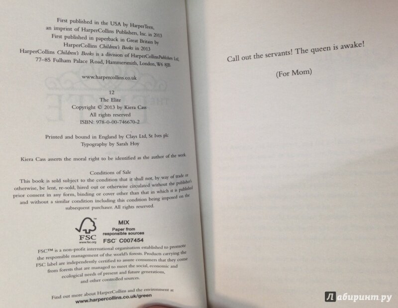 Книга: The Elite (Kiera Cass); Harper Collins Publishers, 2013