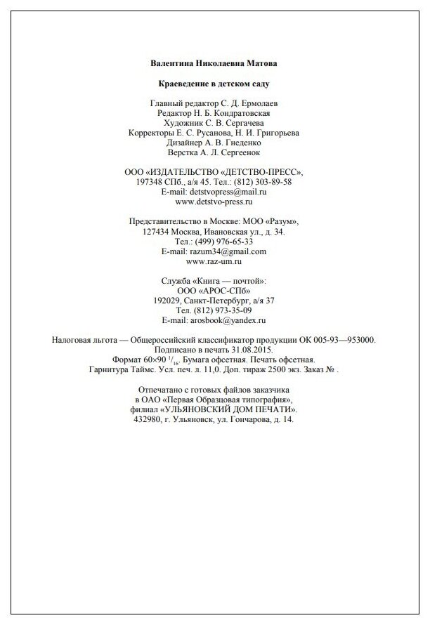 Сервис сравнения цен СкидкаГИД предлагает сравнить цены на товар «Книга: Краеведение в детском саду. (Матова Валентина Николаевна); Детство-Пресс, 2021»
