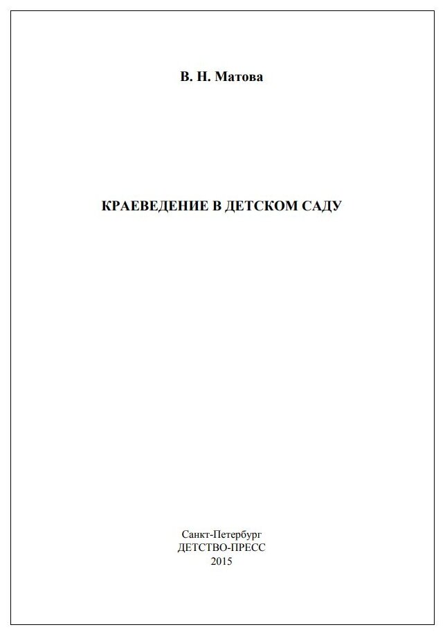 Краеведение в детском саду. (Матова Валентина Николаевна); Детство-Пресс, 2021