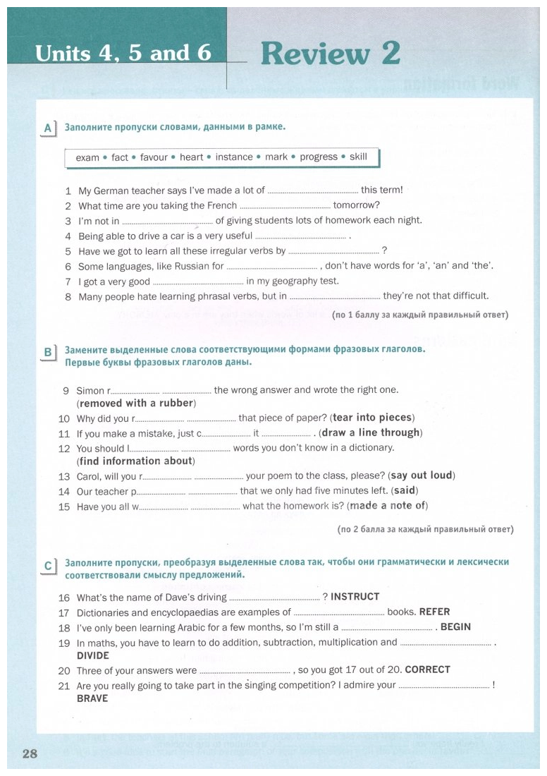 28 грамматических и 14 лексических разделов, а также 14 разделов на повторение пройденного материала;