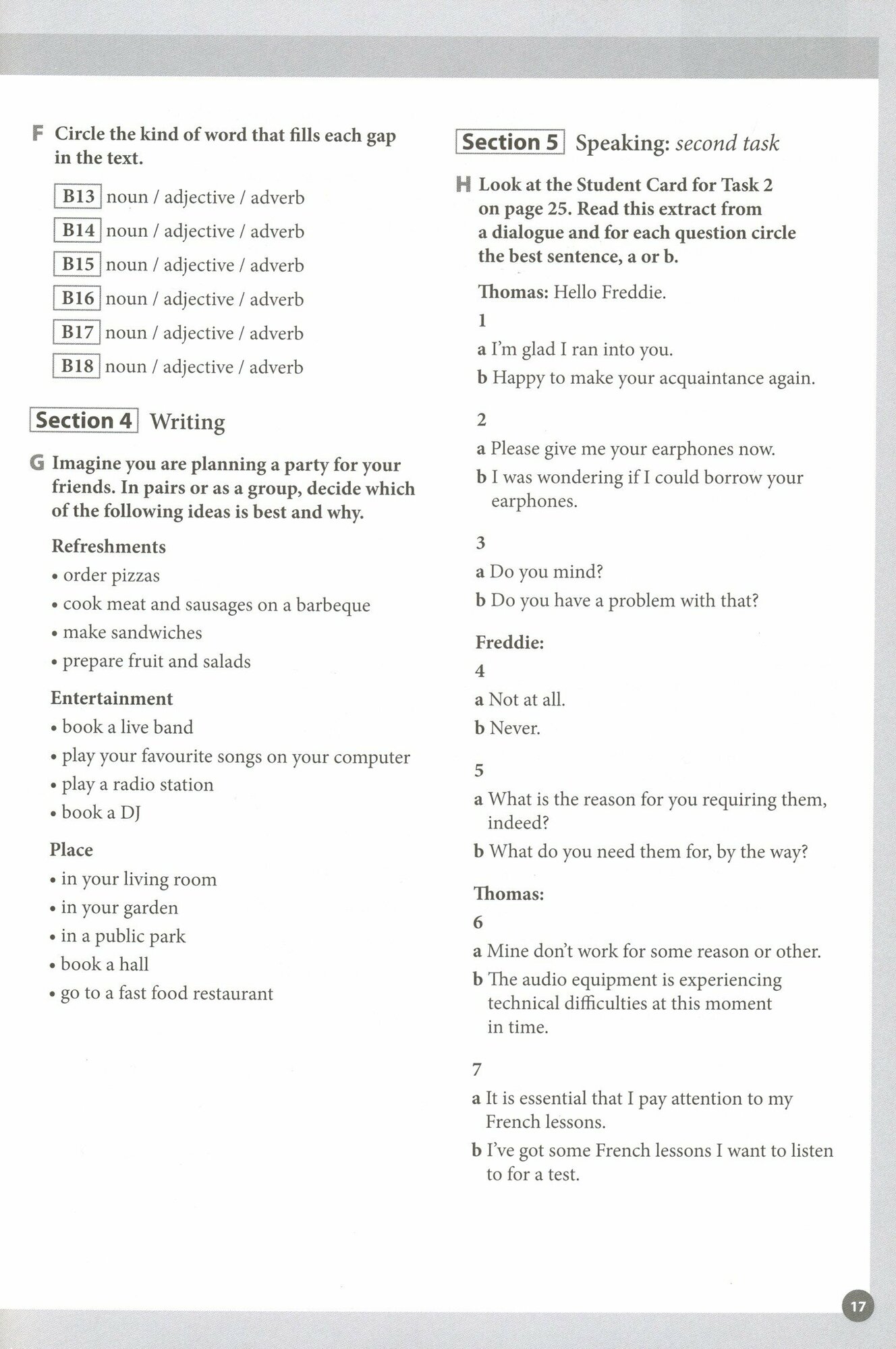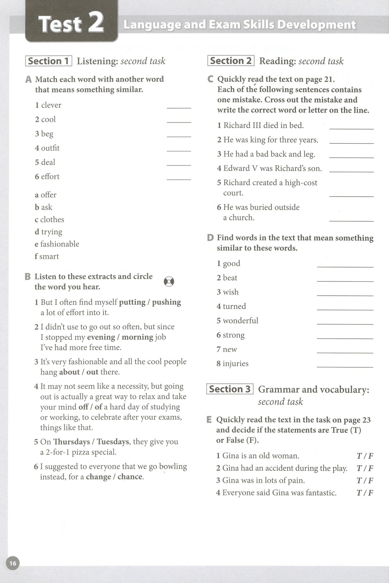 советы учащимся по выполнению тестовых заданий в разделах "Аудирование", "Говорение", "Чтение" и "Письмо";