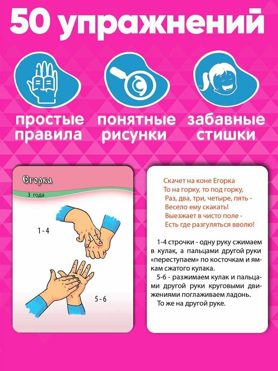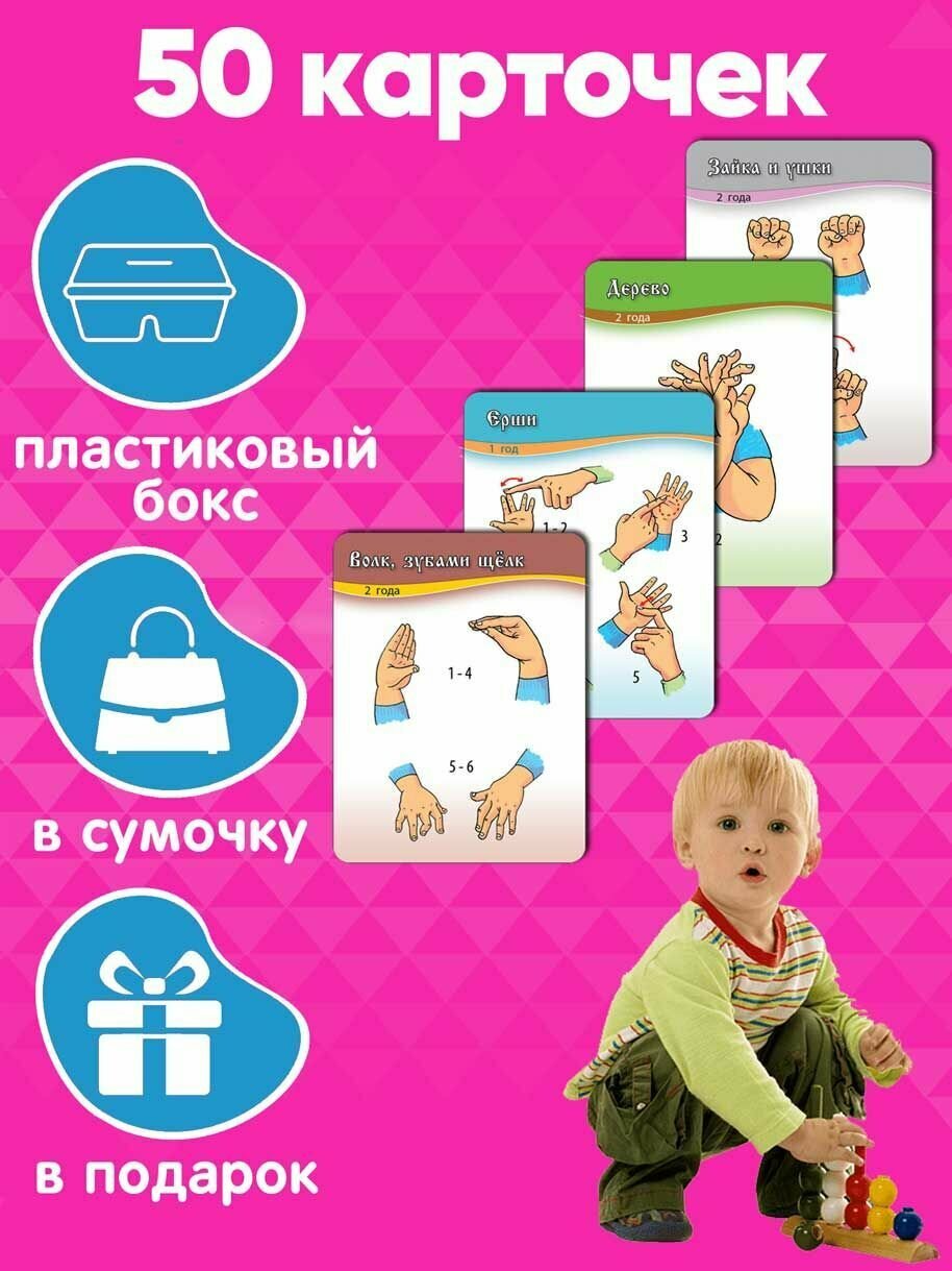 Книга для детей "Пальчиковая гимнастика" в виде развивающих карточек для малышей - волшебный подарок для молодых мам и их детей от 0 до 3 лет. В настольной развивающей игре для детей, состоящей из 50 разнообразных пальчиковых игр, заданий, иллюстраций и стихов, Вы найдете всю нужную информацию для запуска речи ребенка, столь же ценную, как в книжках для детей по данной тематике. С учетом детской психологии и логопедии, обучающие карточки способствуют развитию речи, внимательности и мышления Вашего малыша. Пальчиковая гимнастика обучает детей логопедическим играм и артикуляционным упражнениям, а также улучшает мелкую моторику и координацию движений. Для родителей и специалистов эти карточки станут отличным инструментом воспитания и развития ребенка. В наборе карточек вы найдете популярные и эффективные методы развития, для малышей делая процесс воспитания и педагогики увлекательным и занимательным. Компактный пластиковый бокс обеспечивает возможность заниматься с ребенком в любом месте и брать его с собой. Используйте карточки регулярно, чтобы укрепить связь между вами и вашим малышом, а также для успешного развития мозга и навыков чтения. Это пособие - идеальный выбор для мам, ищущих качественные, доступные и полезные материалы для своих детей. Он прекрасно подойдет в качестве подарка на день рождения, Новый год или просто как приятный сюрприз для вашего малыша. Вкладывайте время и заботу в развитие вашего ребенка, и вскоре вы увидите впечатляющие результаты! Воспользуйтесь этим набором, чтобы малыш не только развивался, но и радовался каждому новому уроку, открывая для себя мир знаний и умений.