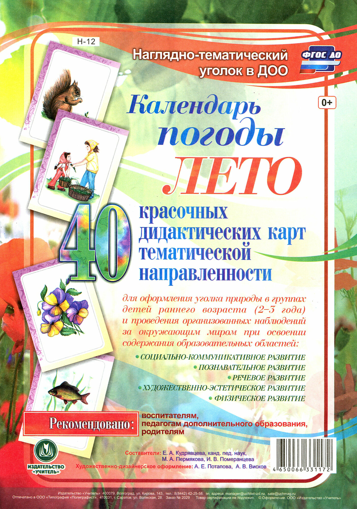 Предлагаемый наглядно-дидактический комплект "Календарь погоды. Лето" включает 40 красочно оформленных листов, позволяющих воспитателю доступно и увлекательно в совместной деятельности с ребенком осуществлять систематическое наблюдение за природой во все времена года, знакомить с их характерными особенностями и сезонным трудом людей.