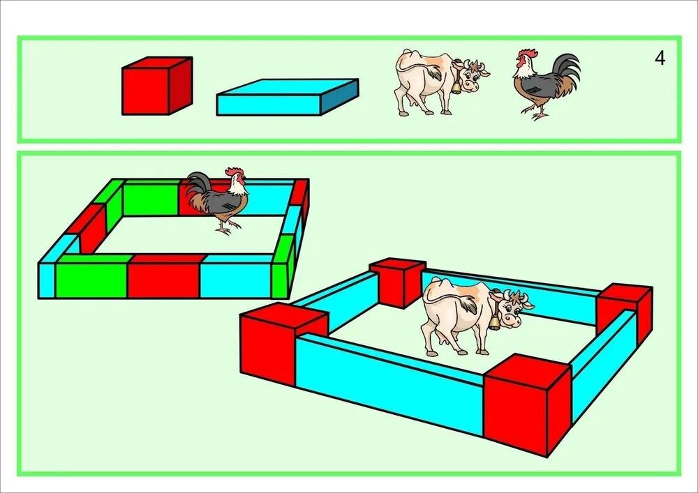 Предлагаемый наглядно-дидактический комплект "Конструирование из строительных материалов" включает в себя 26 красочно оформленных листов, позволяющих ребенку доступно и увлекательно в совместной деятельности со взрослым или самостоятельной игре осуществить в определенной технологической последовательности, действуя по алгоритму и применяя приемы конструирования со строительными деталями, построение восьми моделей (загородка, заборчики, горка с двумя лесенками, ворота, мебель для куклы, домики, скамеечка).