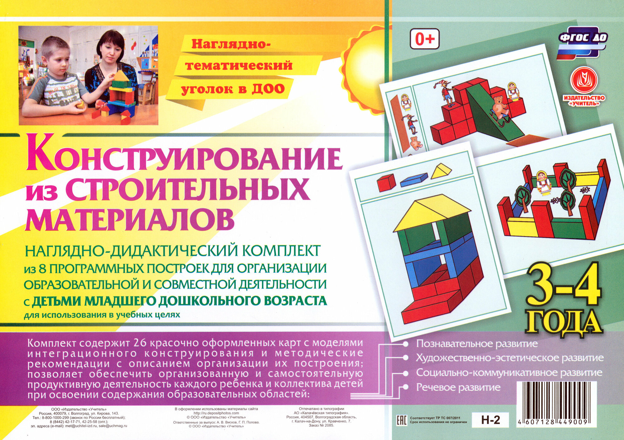 Наглядно-дидактический комплект. Конструирование из строительных материалов. 3-4 года (А. Висков); Учитель, 2017