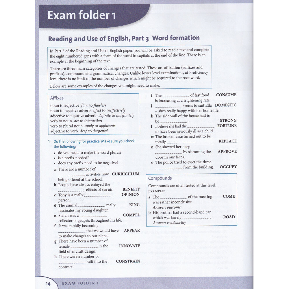 Хороший учебник по подготовке к актуальной версии экзамена CPE (2013 года). Увлекательные тексты, современная лексика. В конце даны ответы ко всем заданиям с небольшими комментариями (то есть книга для учителя у вас уже есть). Особенно хорошо это пособие готовит к самой сложной части - письму. Постепенно шаг за шагом отрабатываются все необходимые навыки. Кроме того, пройдя по ссылке, указанной в учебнике, можно скачать интерактивное программное обеспечение для дальнейшей отработки различных навыков.