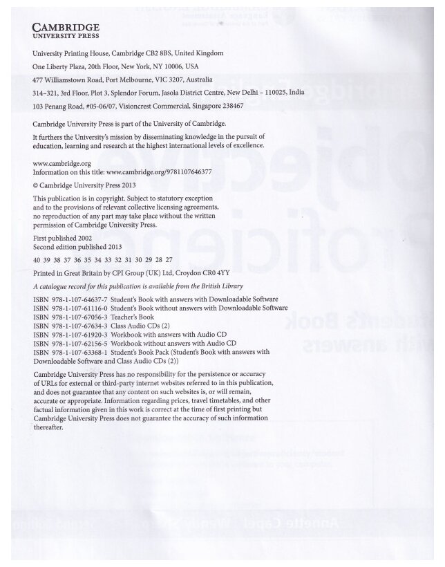 Очень "полезные" отзывы, учитывая, что почему-то никто не пишет о том, что аудио-треки для заданий по Listening именно к этому учебнику не прилагаются. В загружаемом софте есть часть listening, но она не имеет отношения к заданиям по учебнику. В описании продукта указано "Audio for the Student's Book listening exercises is available as part of a separate Student's Book Pack, or separately." Я обратилась и в глобальную службу поддержки Cambridge University Press и в местное представительство в Москве - ответ один - файлов в доступе нет, т.е. их в настоящий момент нельзя ни загрузить, ни купить. Т.е. все задания по listening в этом учебнике просто бесполезны, считайте, что их просто нет. И производитель это даже не указывает нигде.
