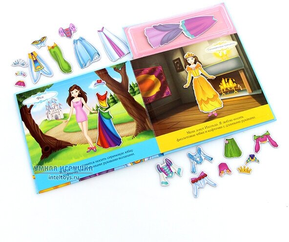 Эта книга подойдет для творческих девочек, которые любят наряжать (наклеивать) принцесс, придумывая разные варианты нарядов. Недостаток один-есть мелкие детали и магнитный наряд в процессе игры может согнуться, тогда нет плотного наклеивания на страницу. Моей дочке 2,9 лет очень понравилась книга, но ровно на 1 неделю.