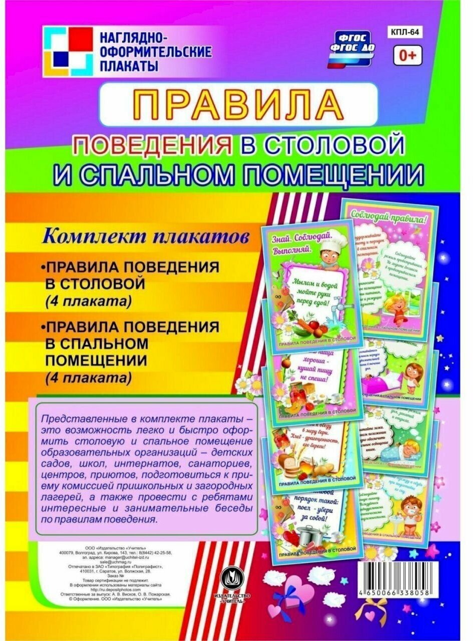 Комплект плакатов. Правила поведения в столовой и спальном помещении. . ДО (Коллектив авторов); Учитель, 2020